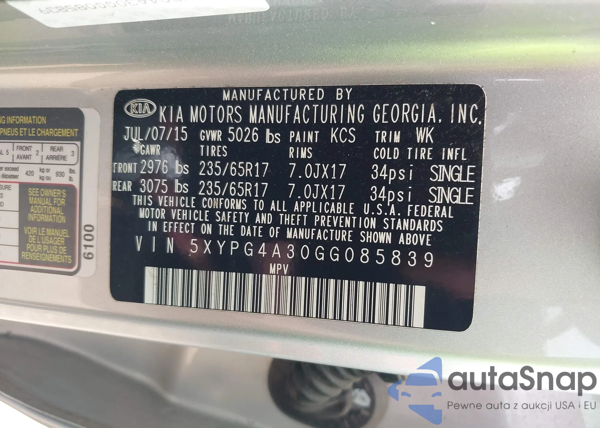 • VIN 5XYPG4A30GG085839
