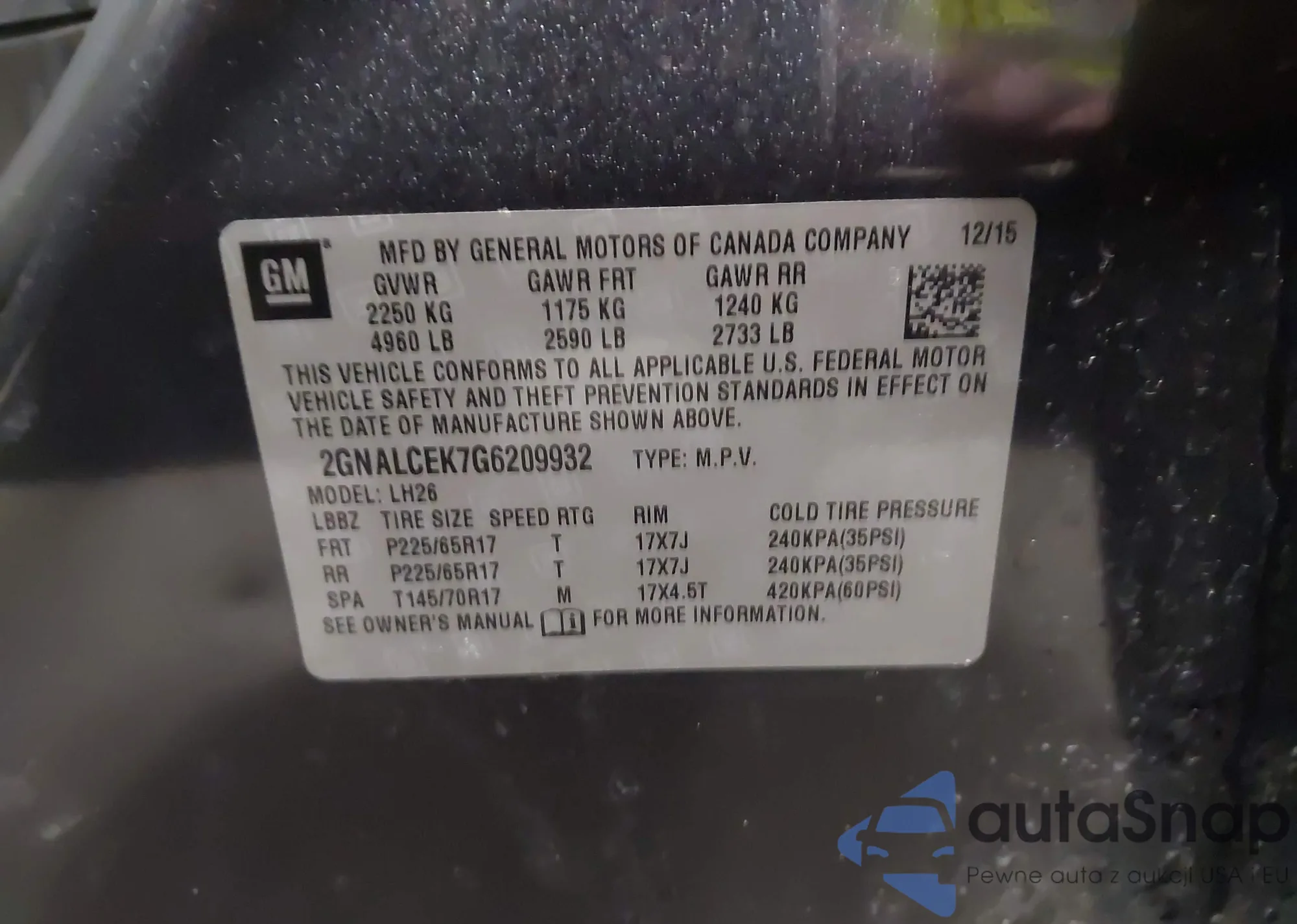 LOT: 42344849 VIN: 3G1BE6SM0KS524394