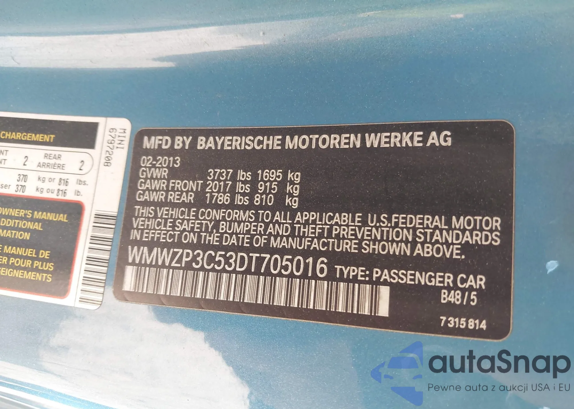LOT: 42155802 VIN: WMWZP3C53DT705016