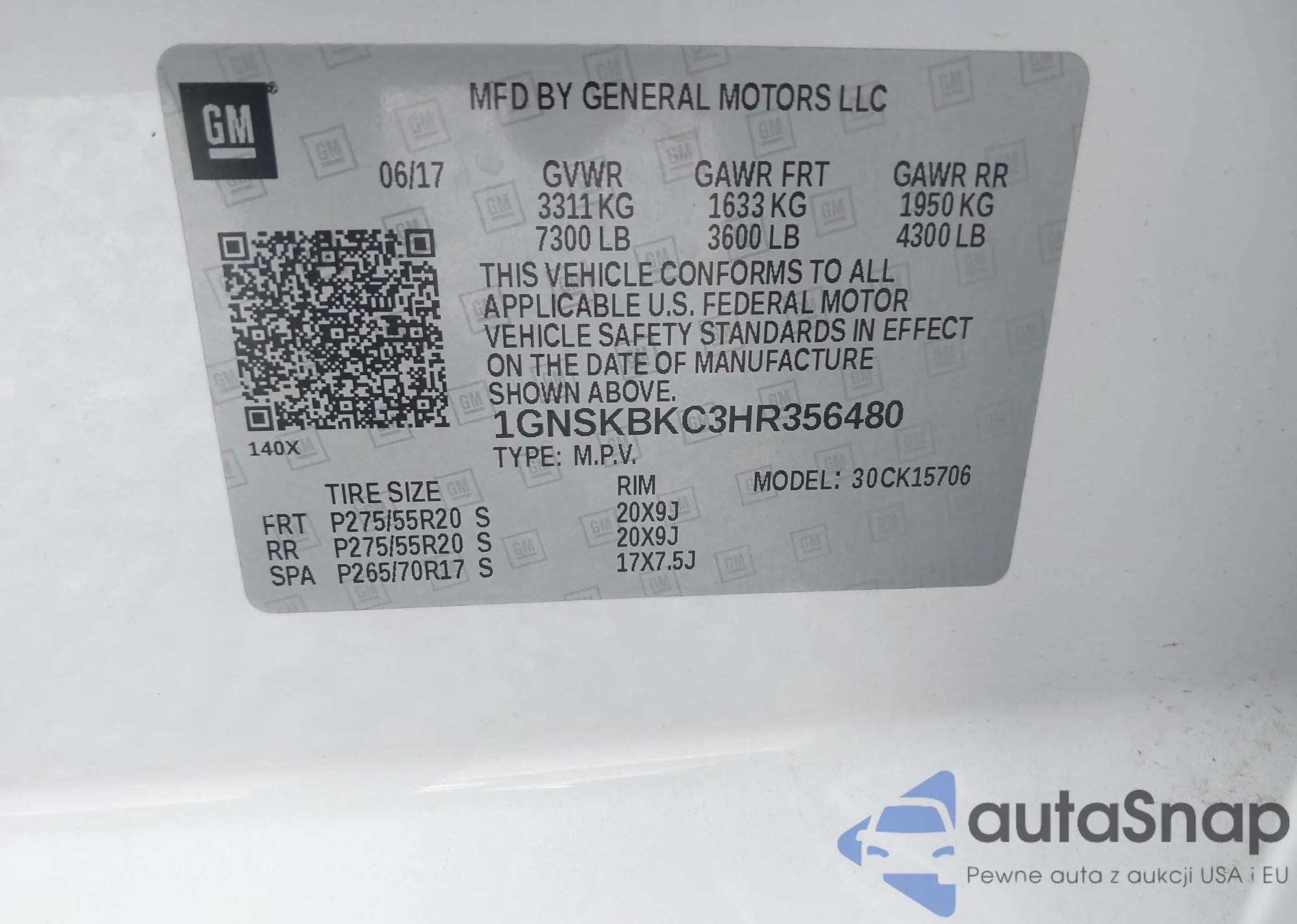 LOT: 42358726 VIN: KL8CB6SA2HC821944