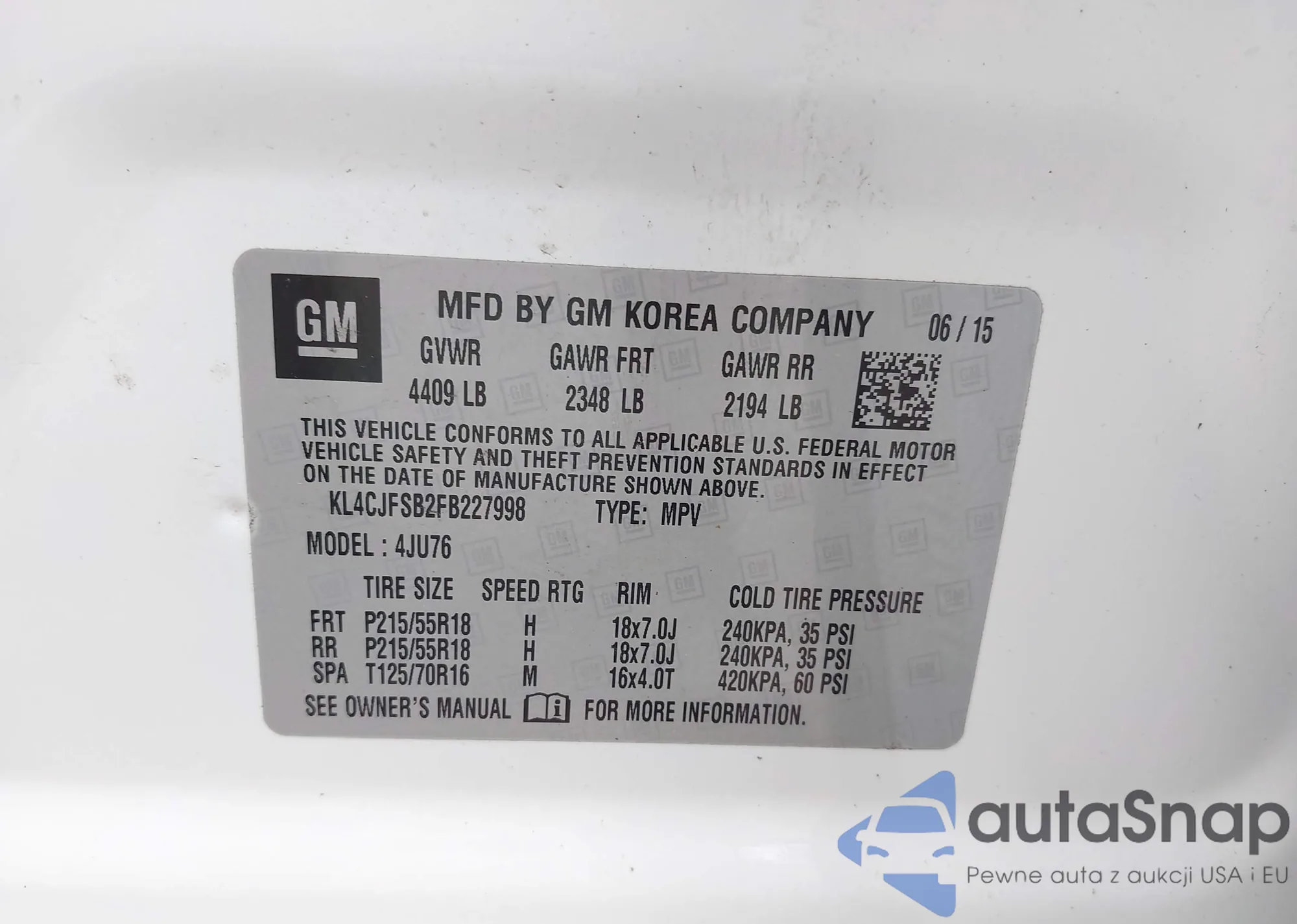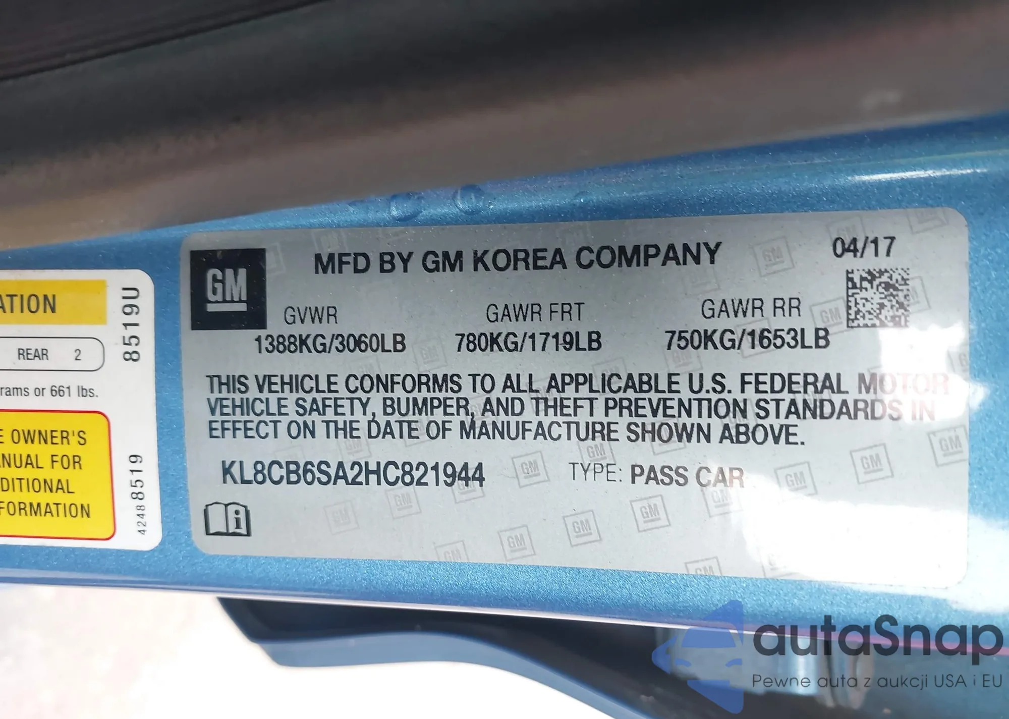 • VIN KL8CB6SA2HC821944