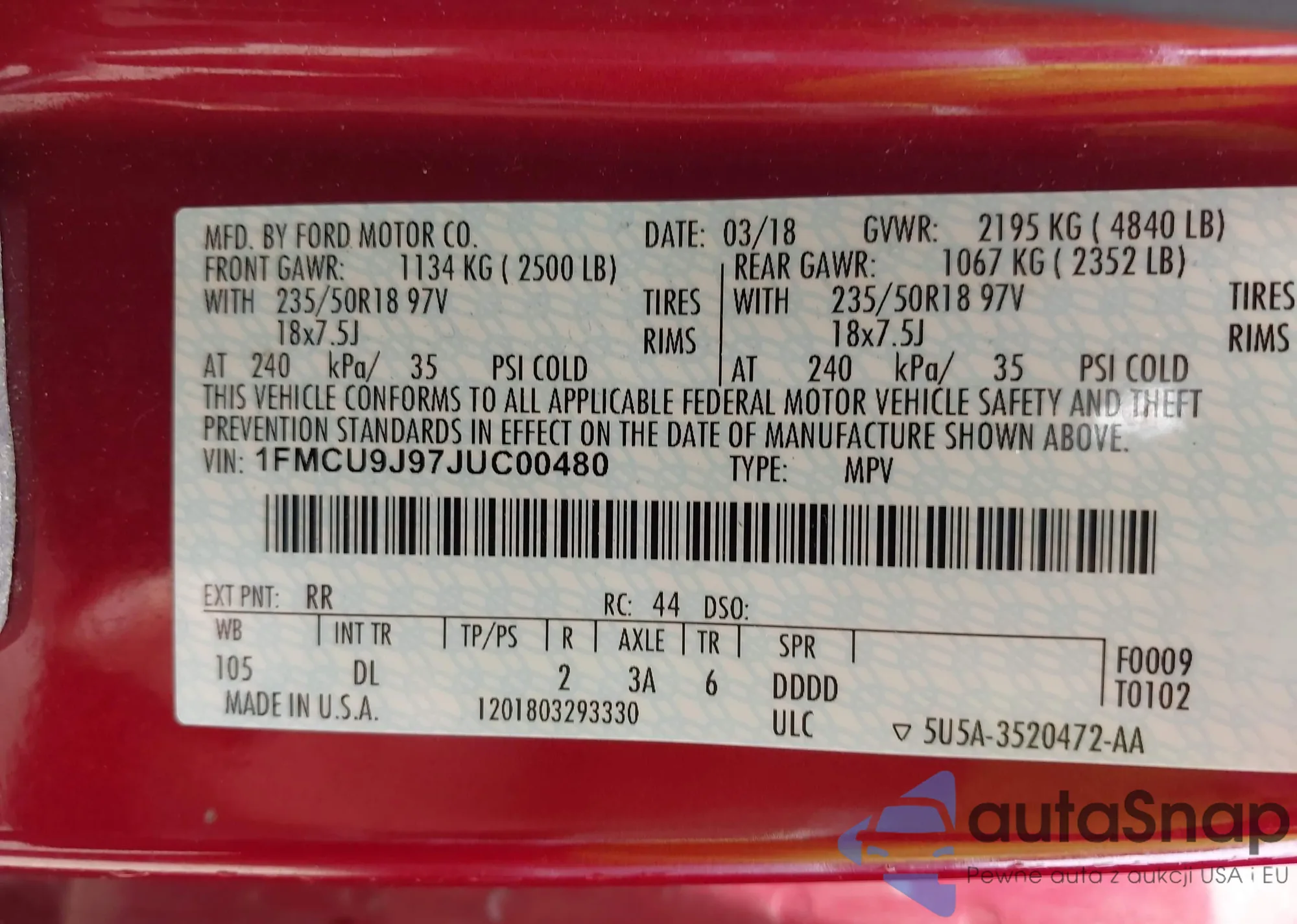 • VIN 1FMCU9G69MUA91893