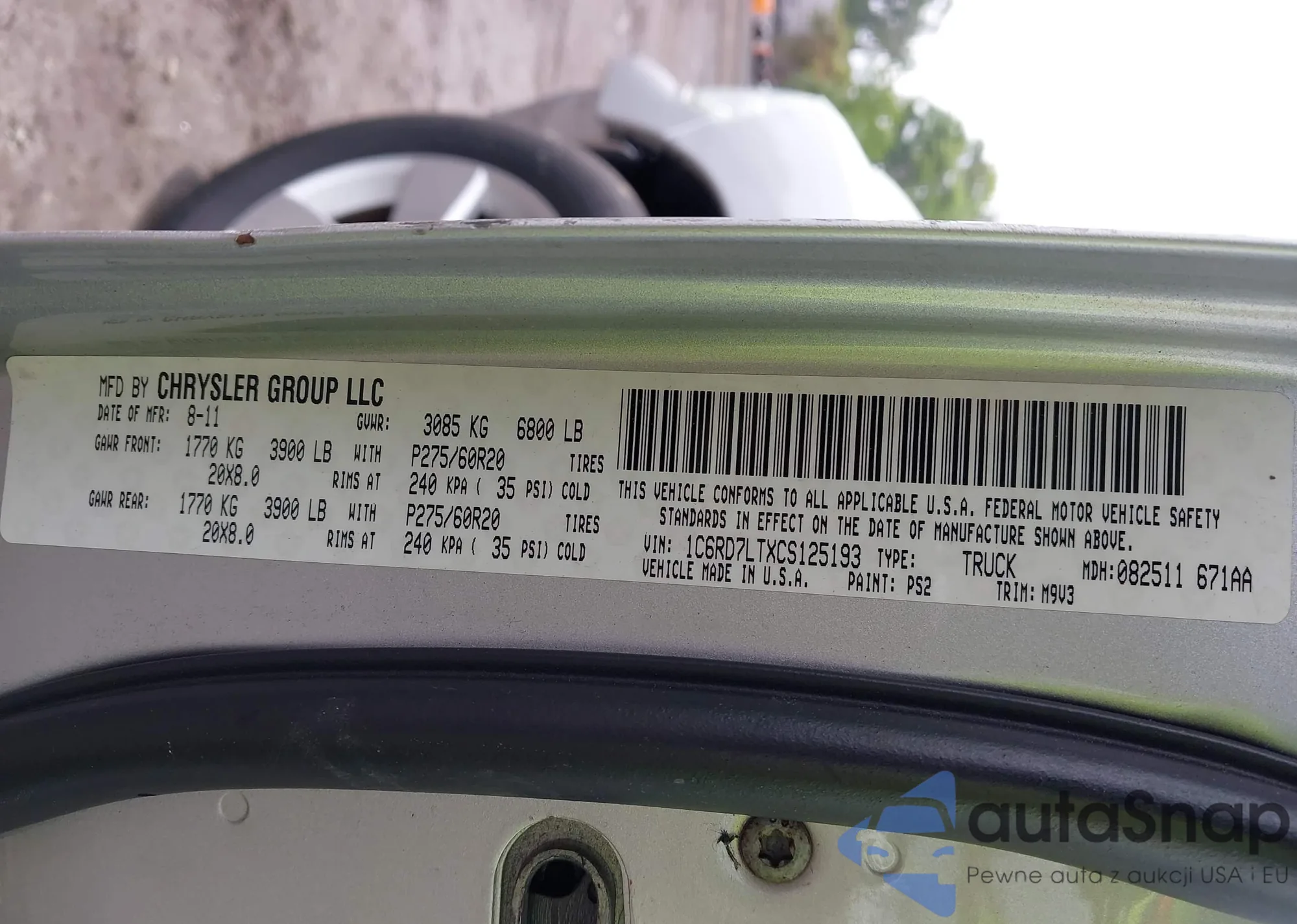 • VIN 1C6RD7LTXCS125193