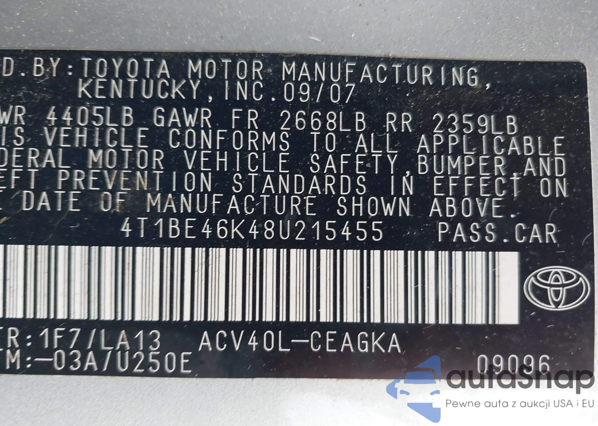 LOT: 42396583 VIN: 4T1BE46K48U215455