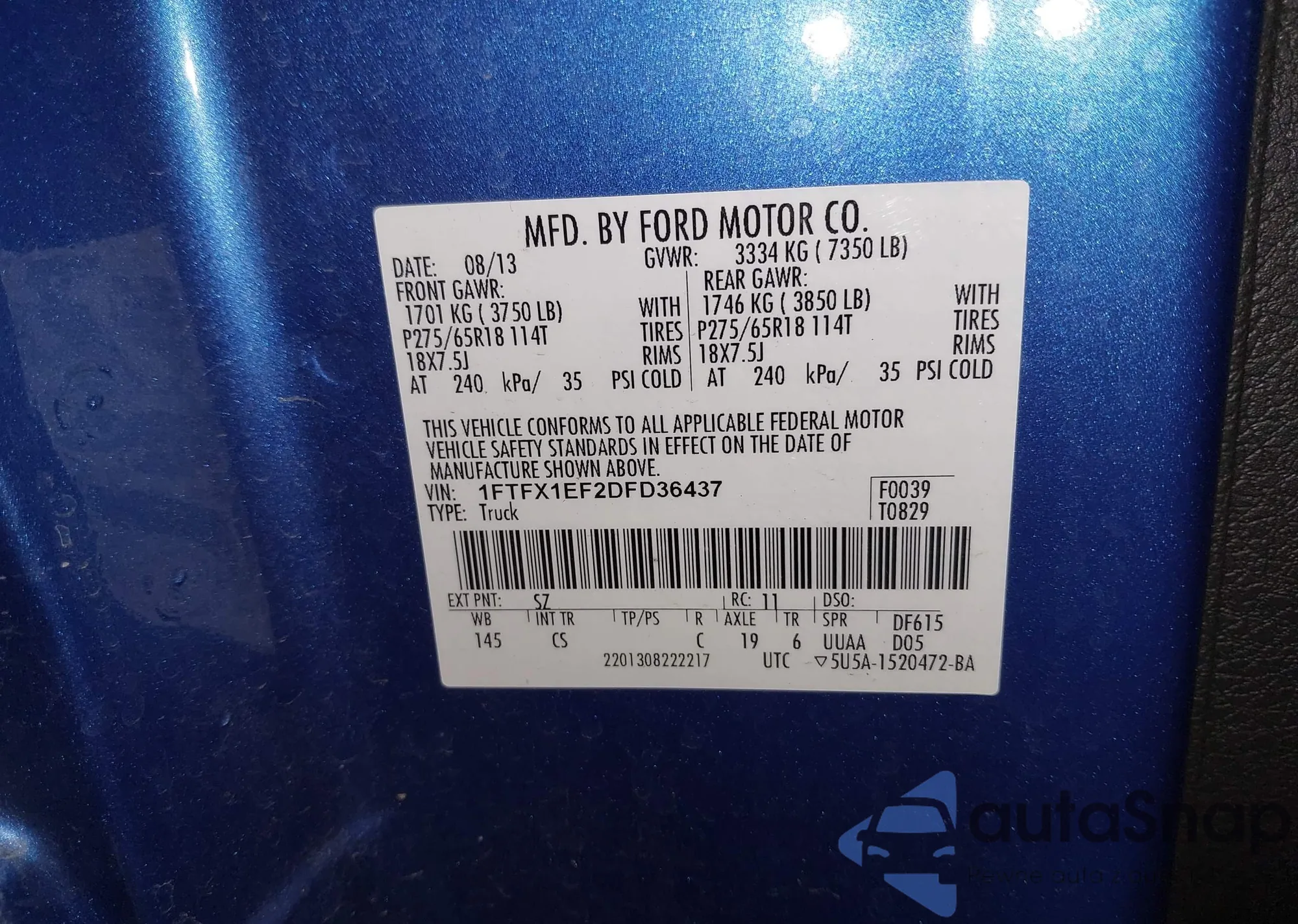 • VIN 1FTFX1EF2DFD36437