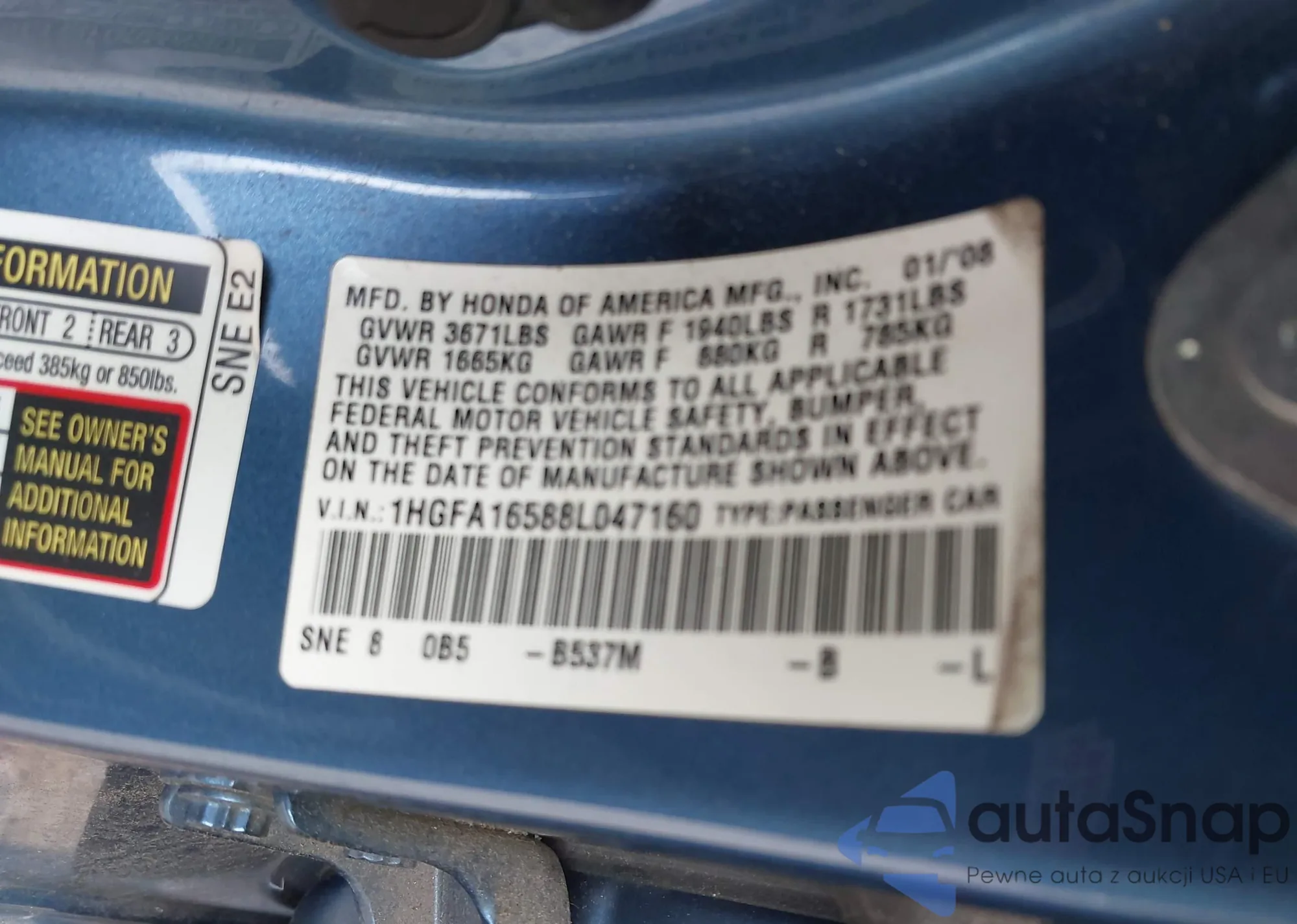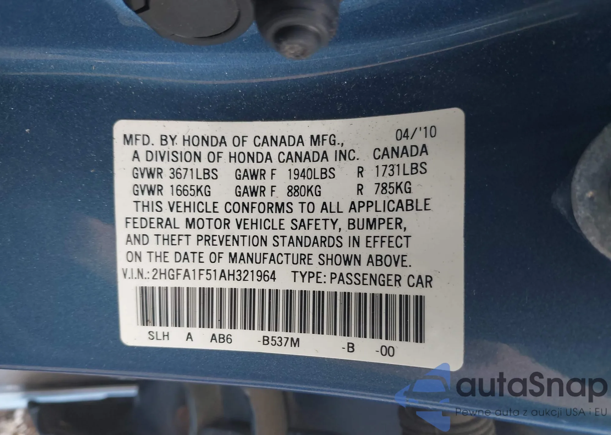 • VIN 5FNRL3H64AB007786