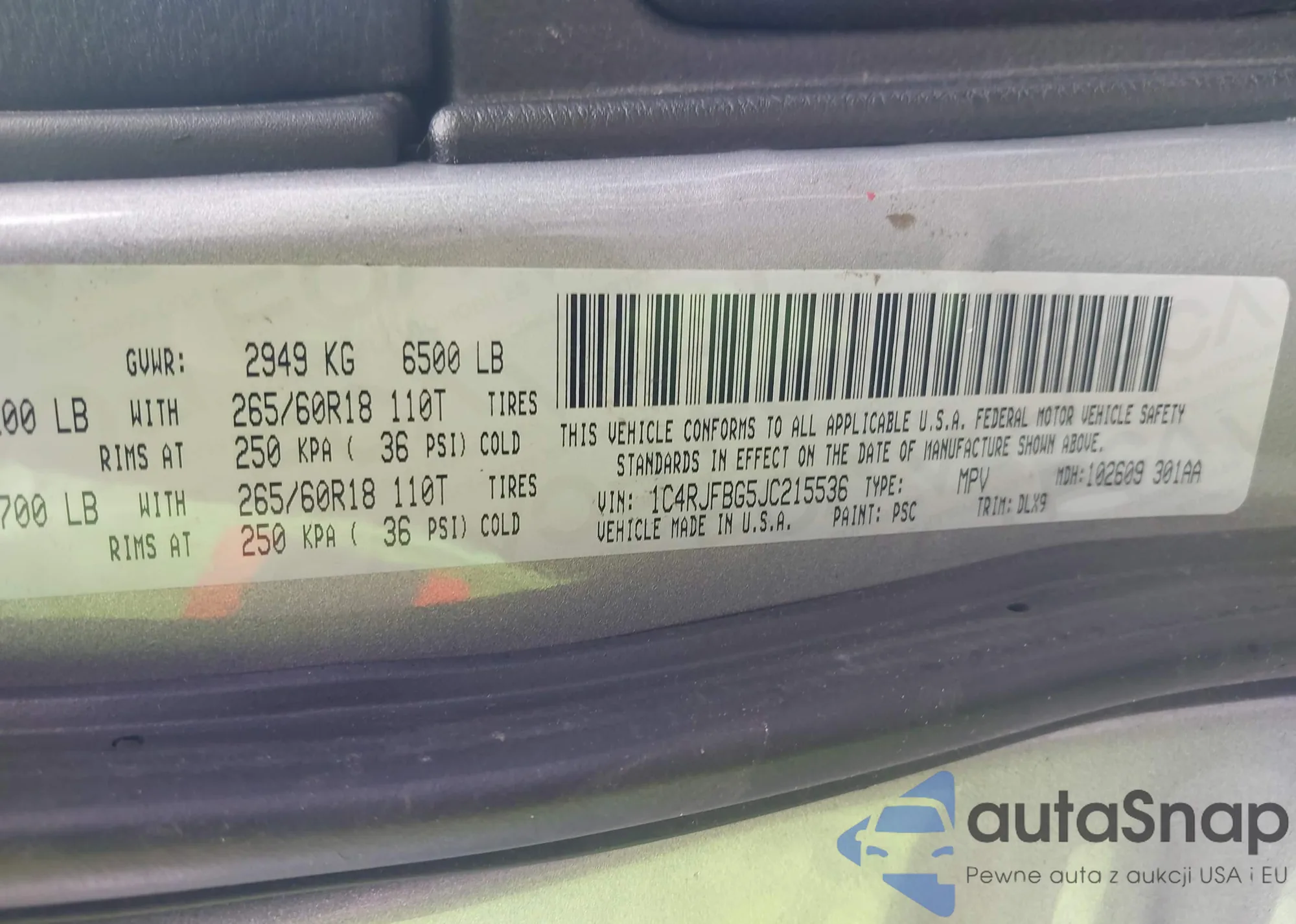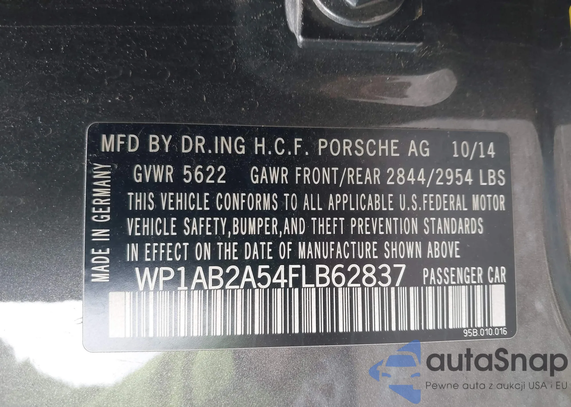 LOT: 42369980 VIN: WP1AB2A54FLB62837