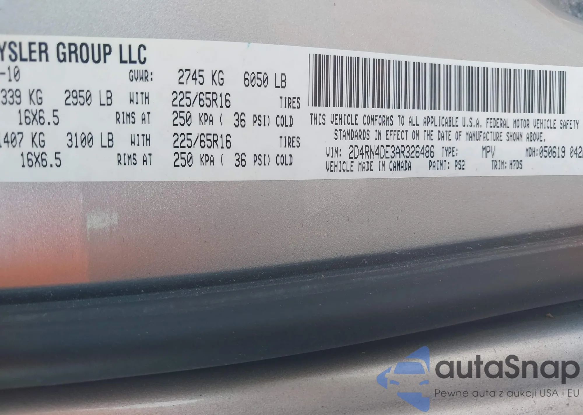 • VIN KMHH35LE7JU082538