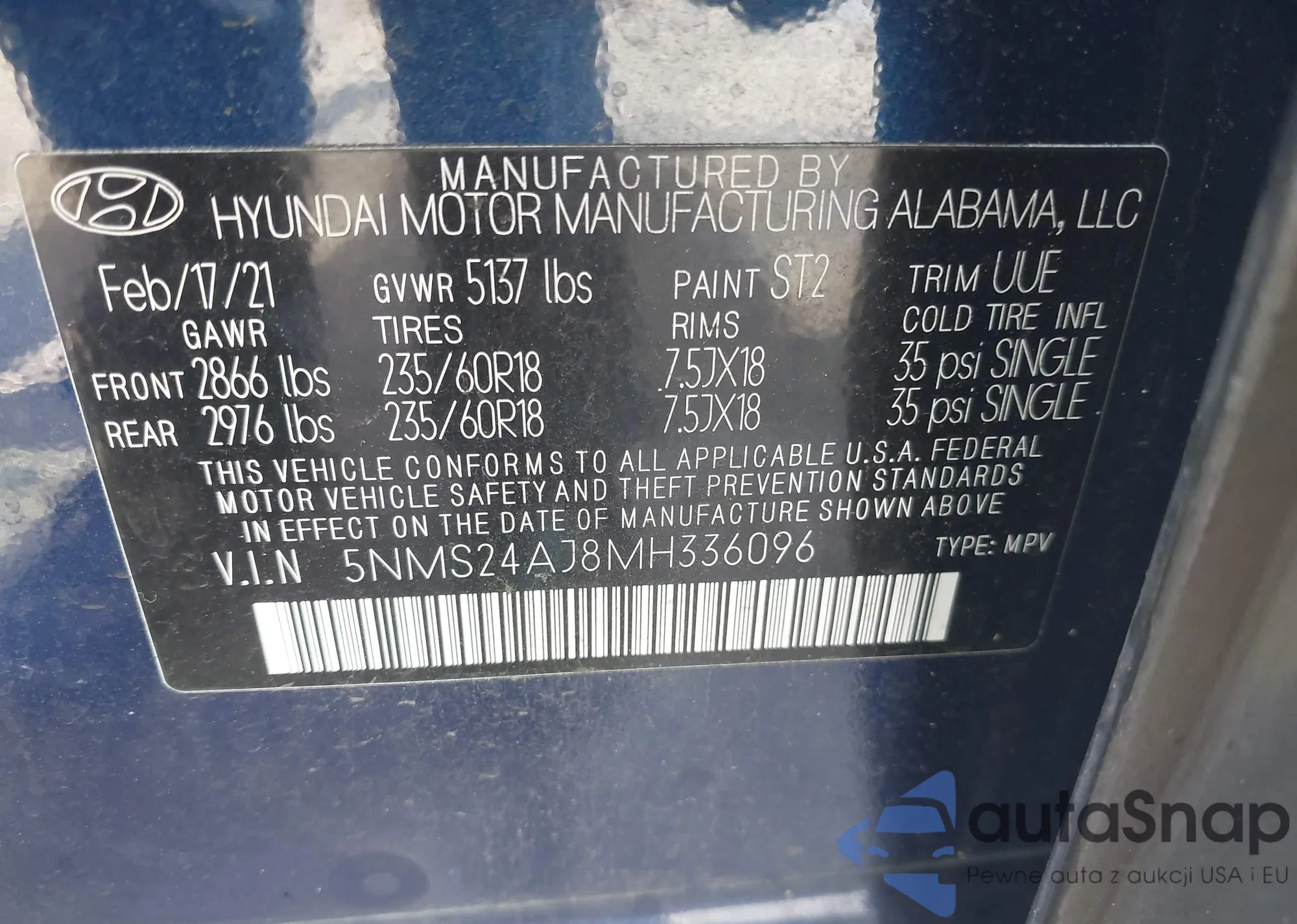 • VIN 5NMS24AJ8MH336096