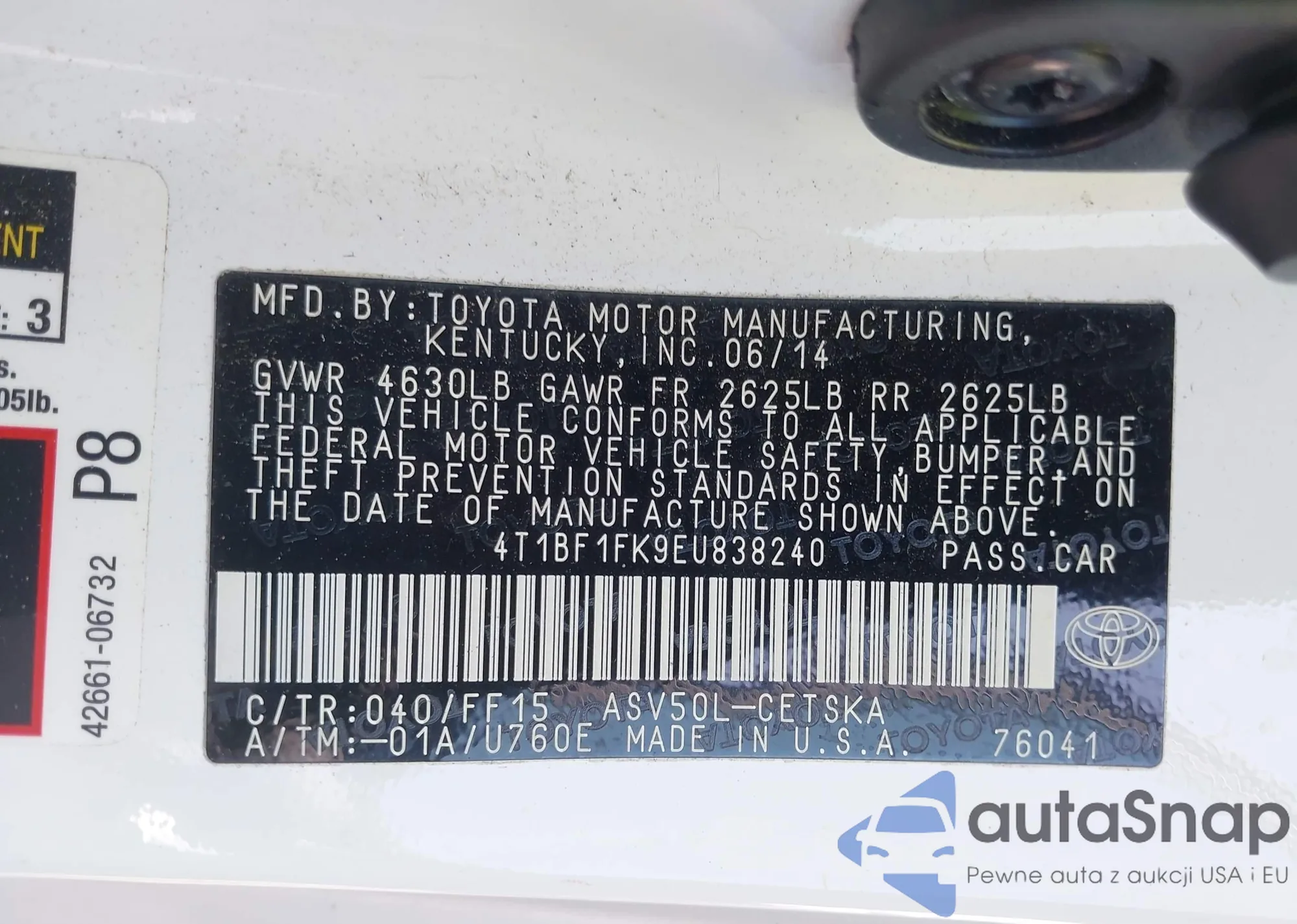 • VIN 4T1BF1FK9EU838240