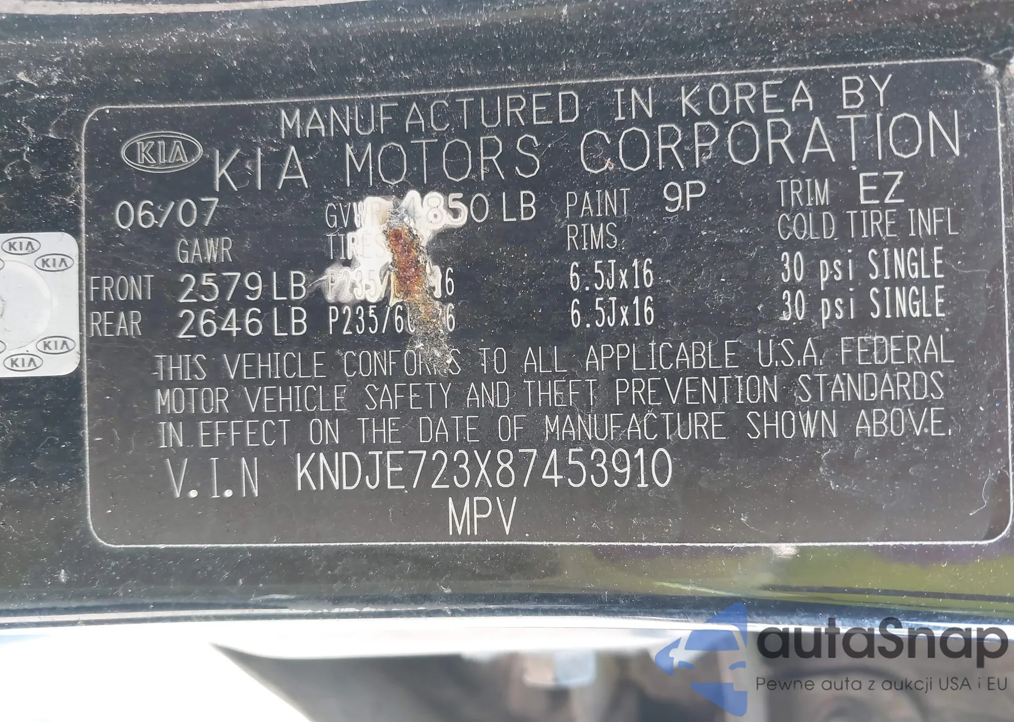 LOT: 42477959 VIN: KNDJE723X87453910