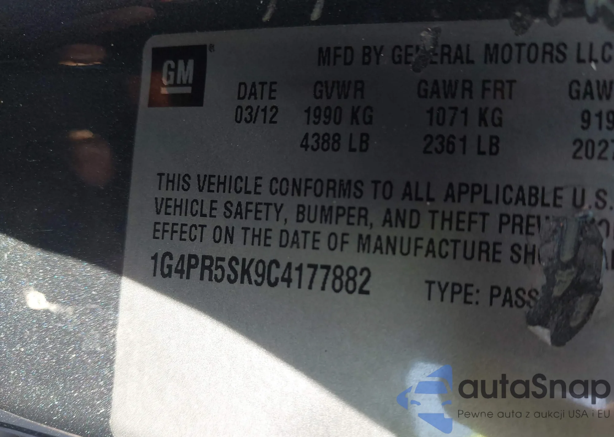 LOT: 42490090 VIN: 1G4PR5SK9C4177882
