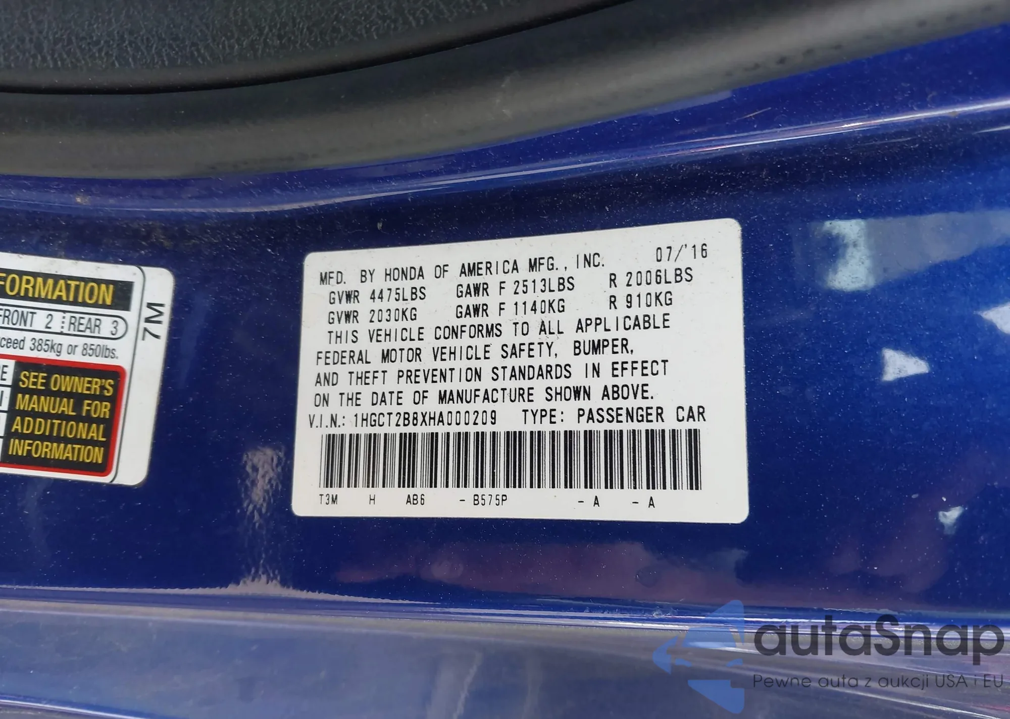 LOT: 42113772 VIN: 1HGCT2B8XHA000209