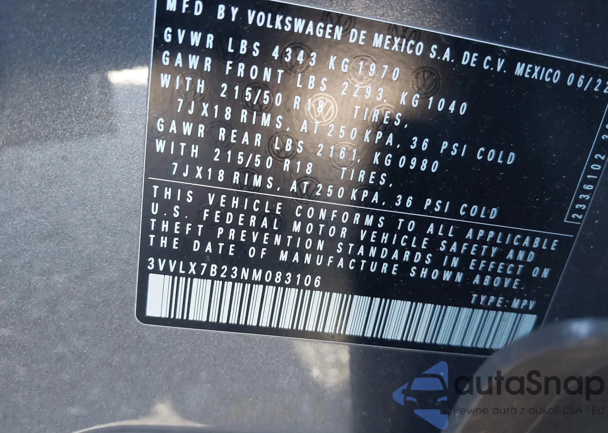 • VIN 3VVLX7B23NM083106