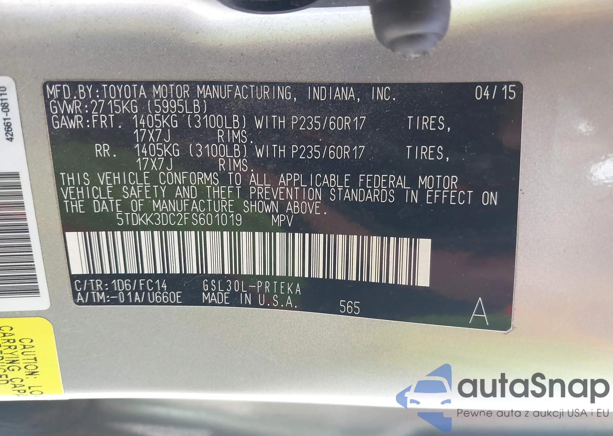 LOT: 42133698 VIN: 1GKKVSKD7HJ221191