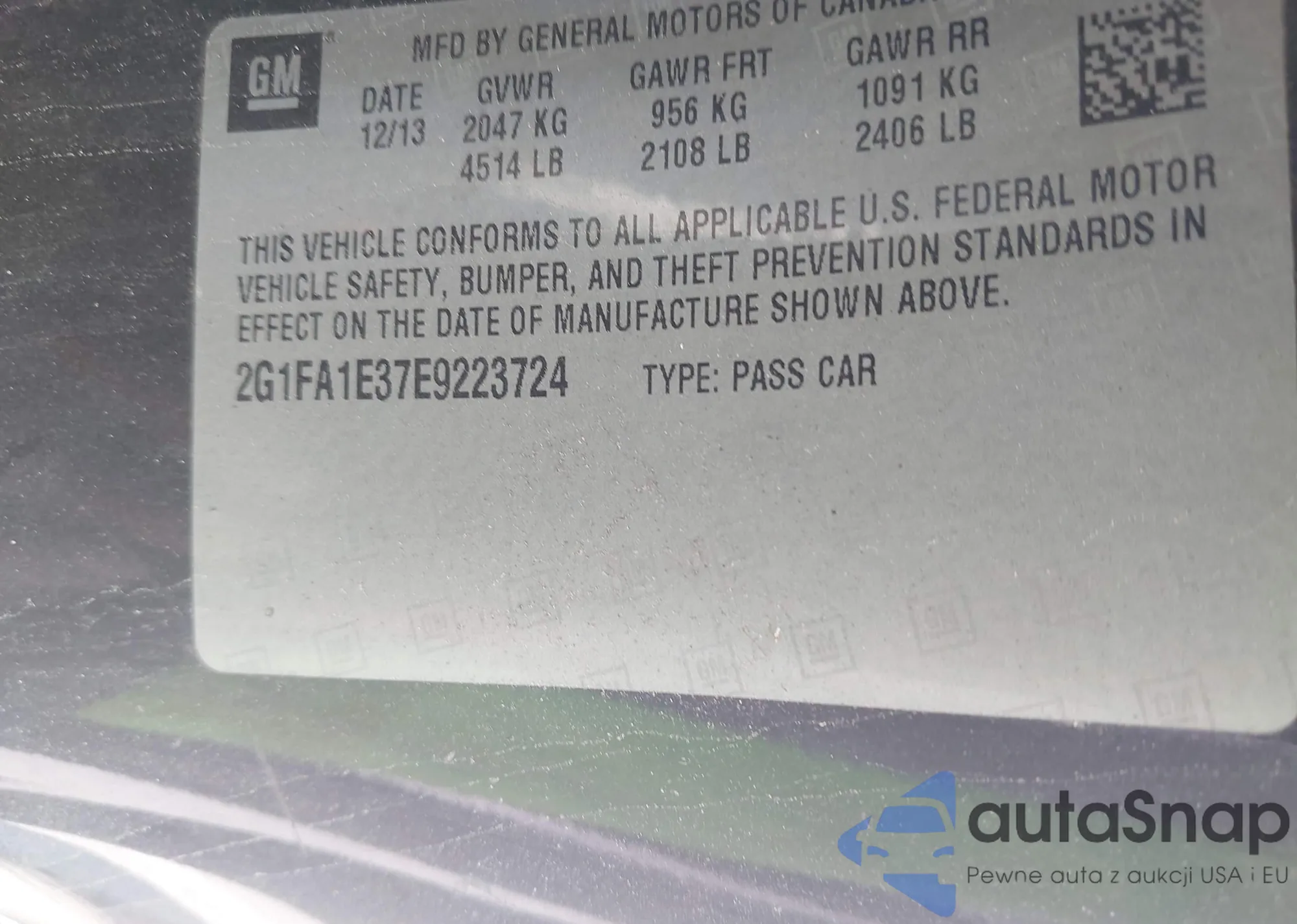 LOT: 42509973 VIN: 2G1FA1E37E9223724