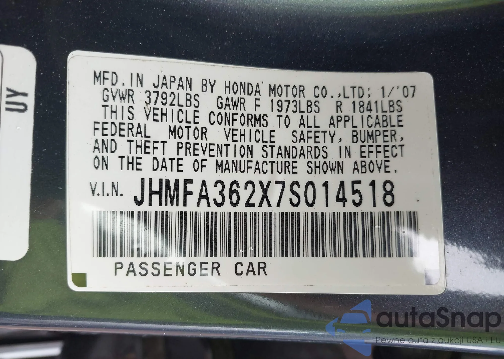 • VIN JHMFA362X7S014518