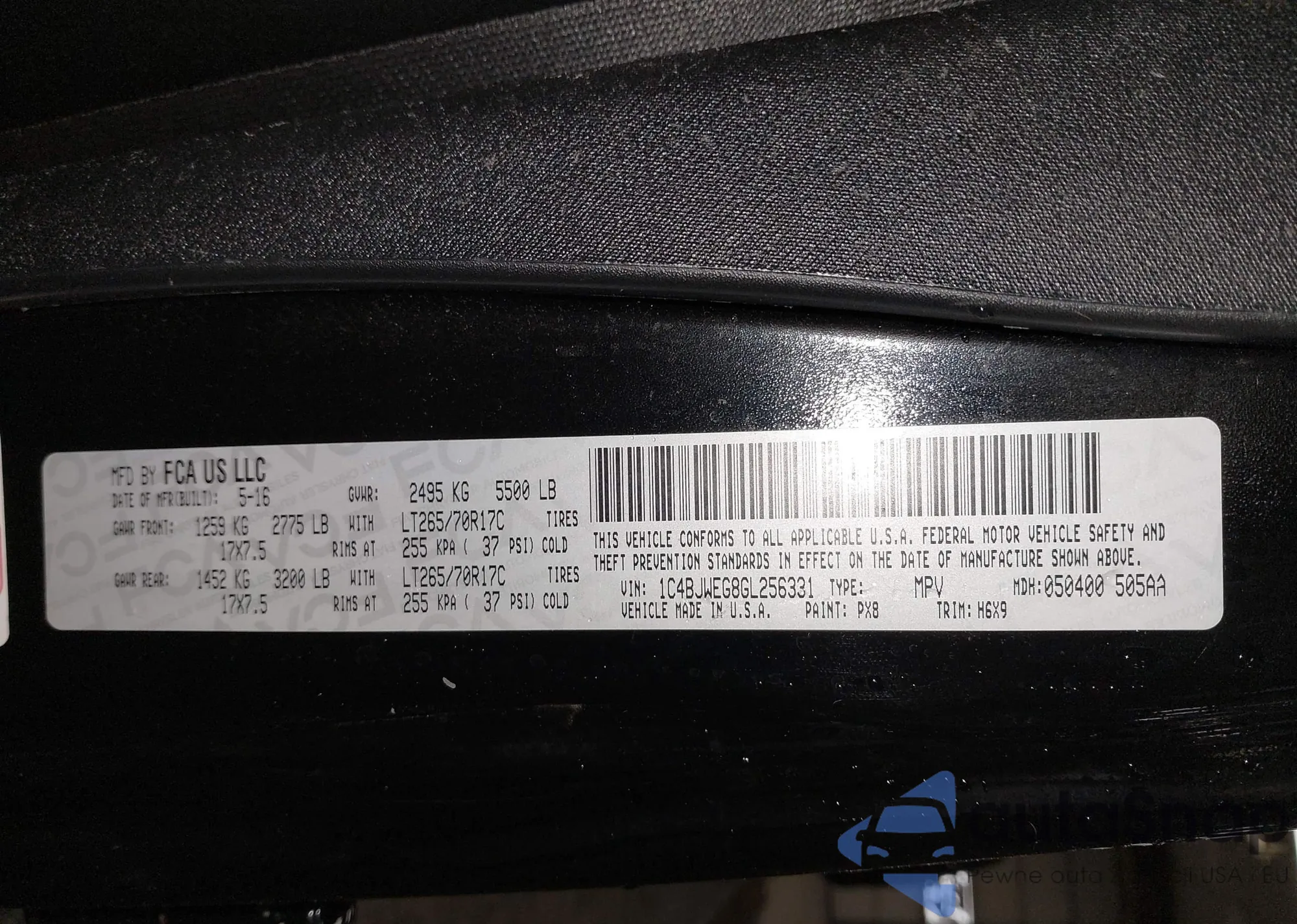 • VIN 1C4BJWEG8GL256331