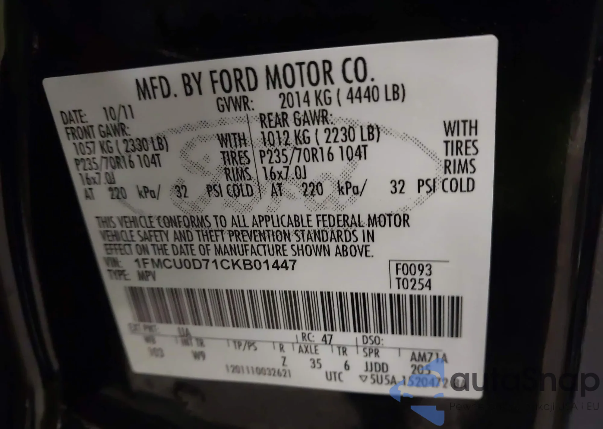 • VIN 4T1B11HK7KU257715