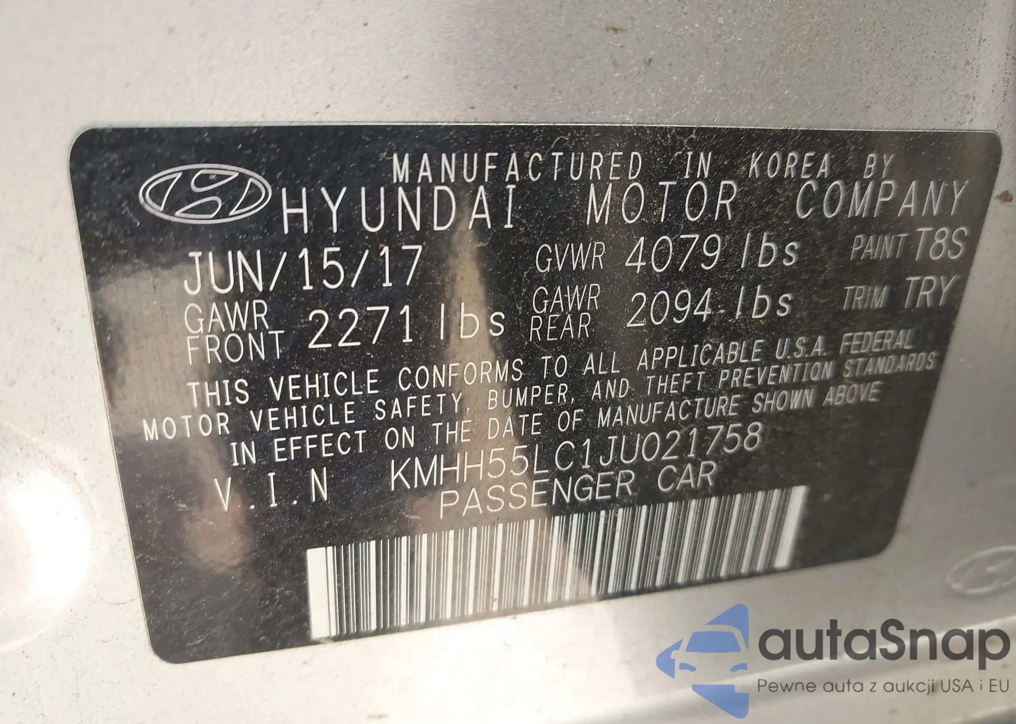 LOT: 42524199 VIN: KMHH55LC1JU021758