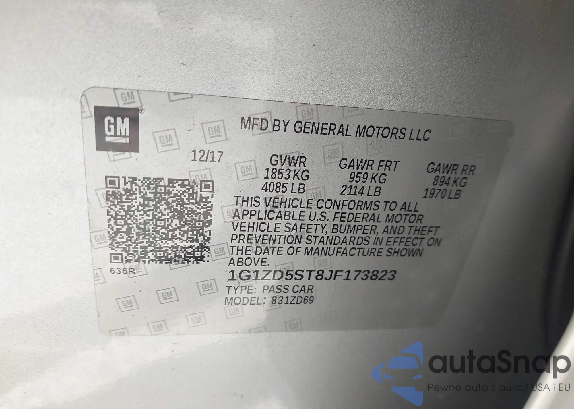 • VIN 1G1ZD5ST8JF173823