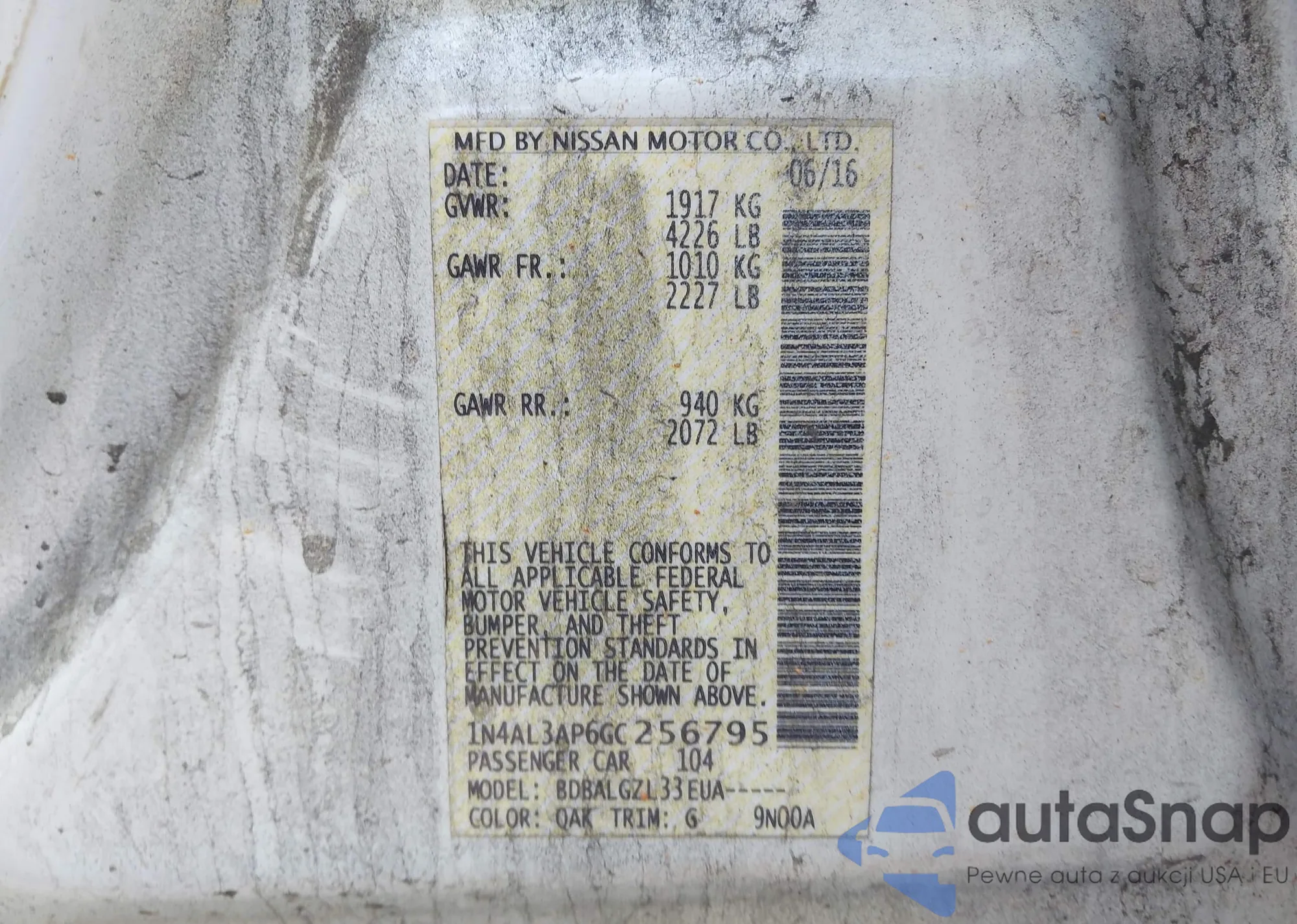 LOT: 42159673 VIN: 1N4AL3AP6GC256795