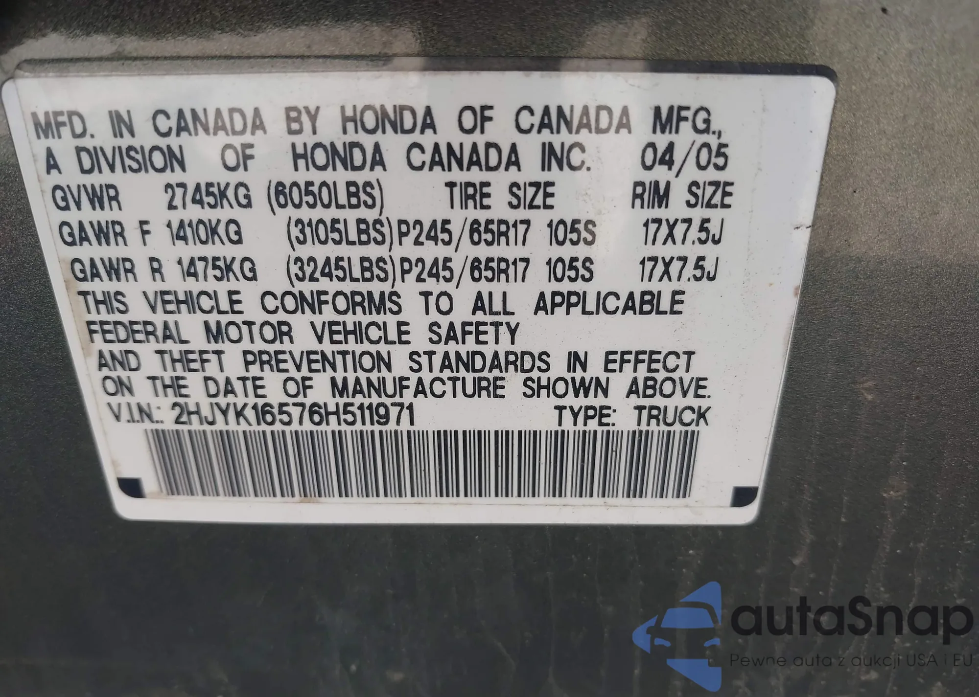 • VIN 2HGFA16569H521007