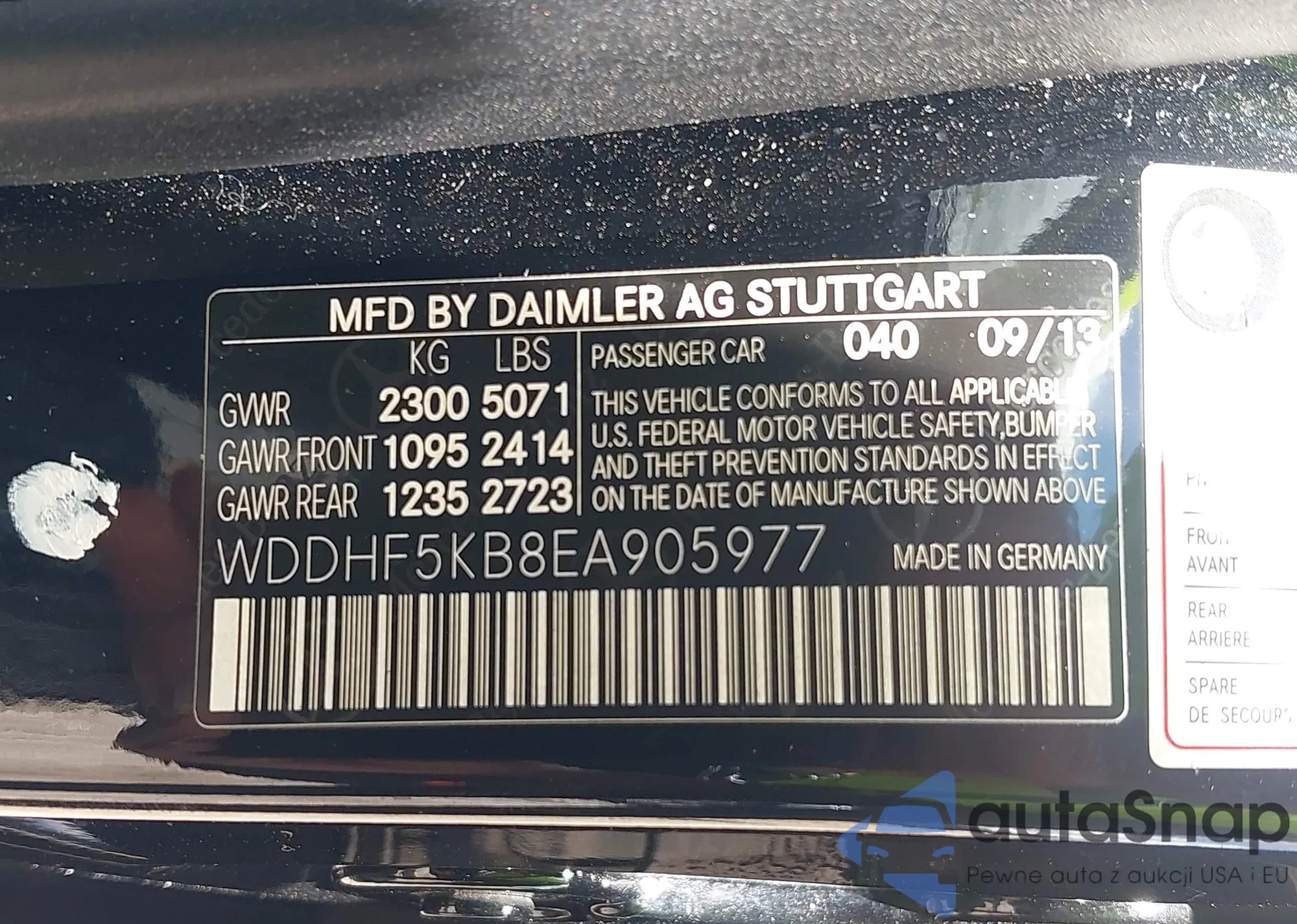 • VIN WAURGAFD8DN012938