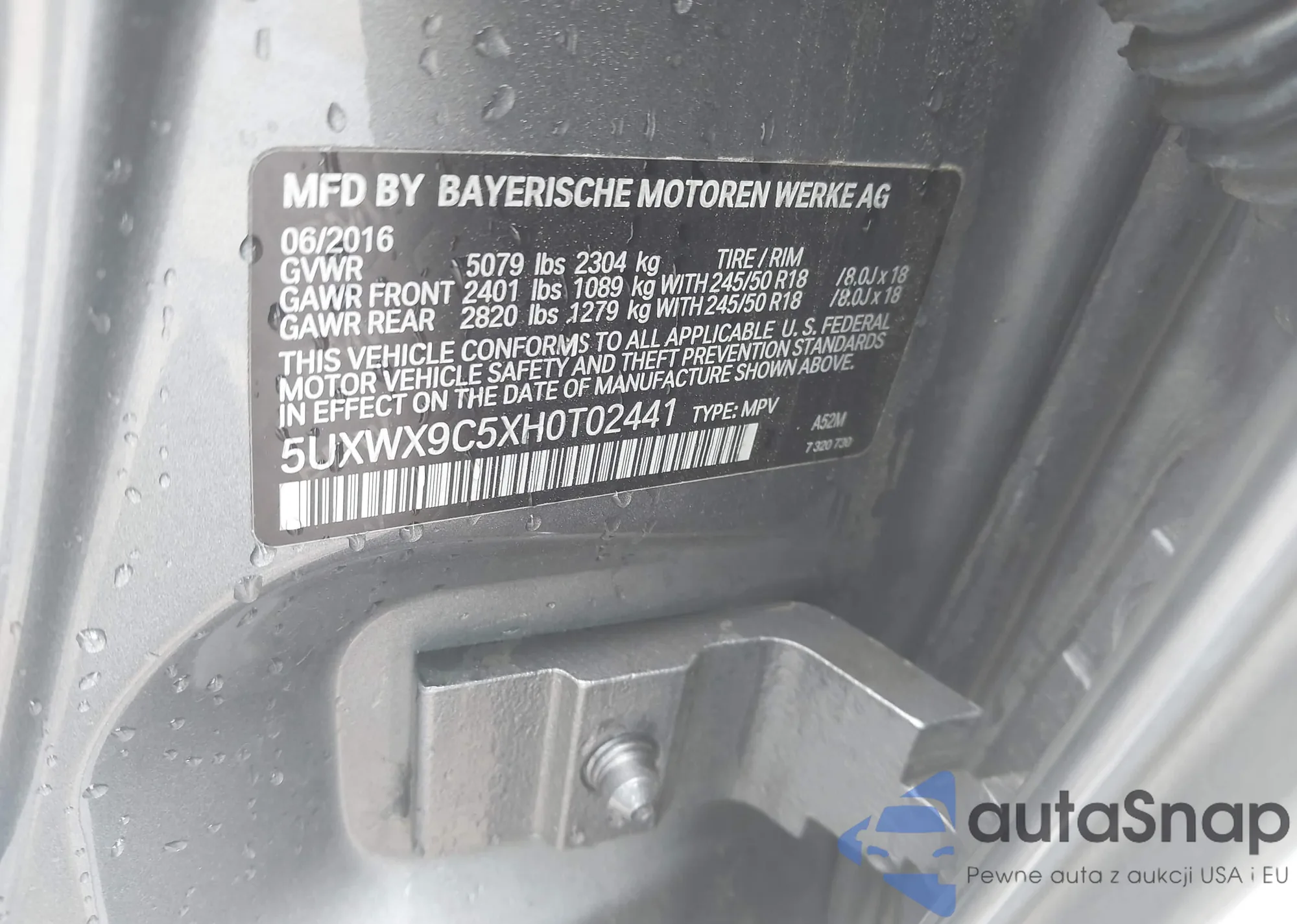• VIN 5UXWX9C5XH0T02441