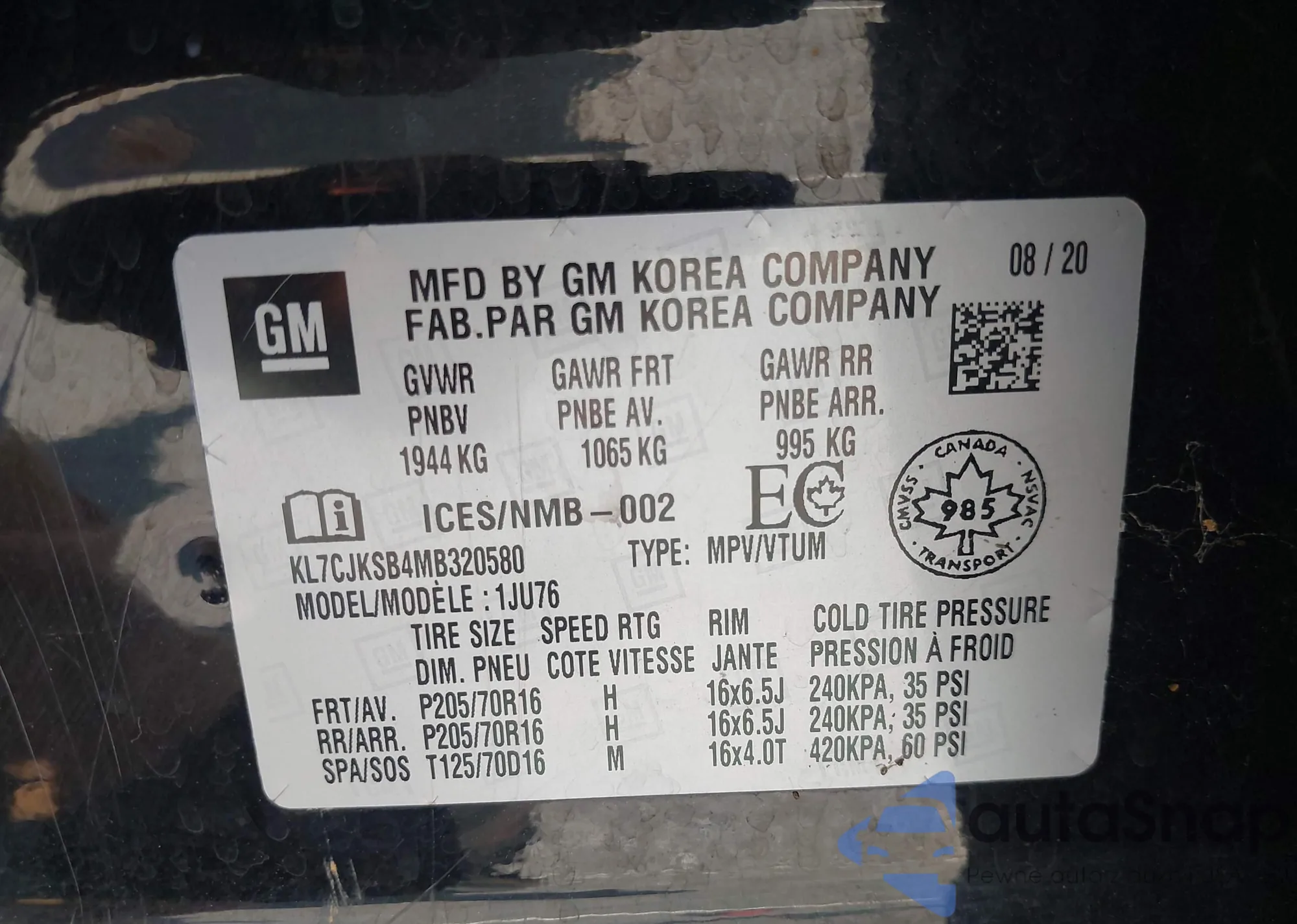 • VIN 3GNCJKSB4LL176651