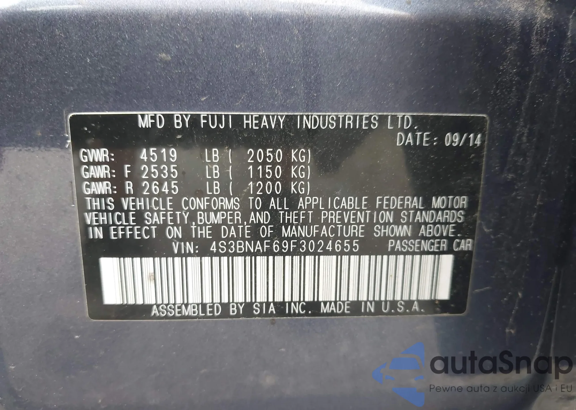 • VIN 5N1AZ2MG9FN247974
