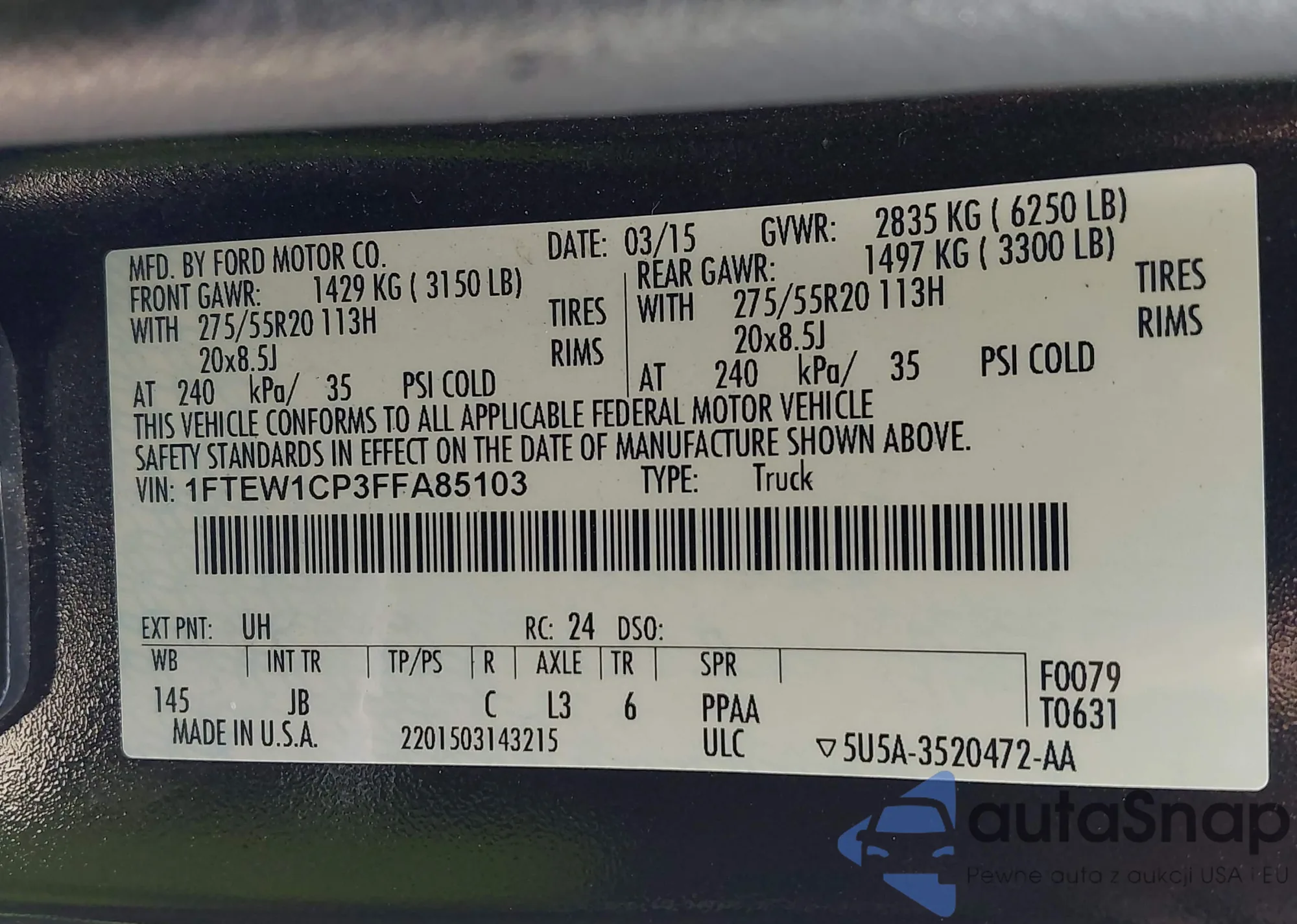 • VIN 1FTEW1CP3FFA85103
