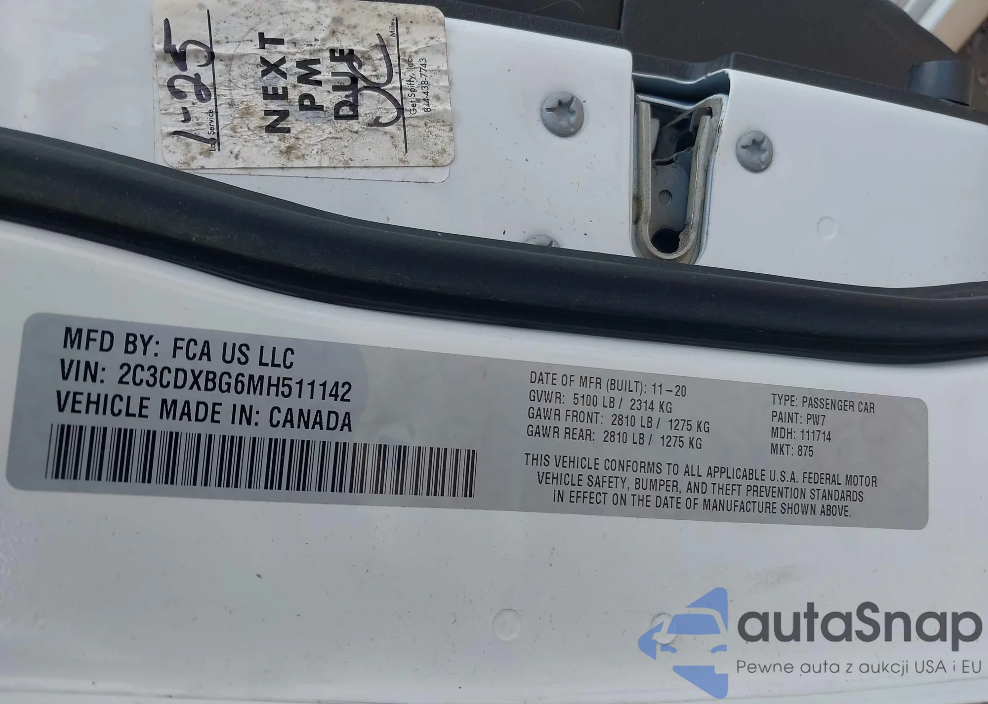 • VIN 2C3CDXBG6MH511142