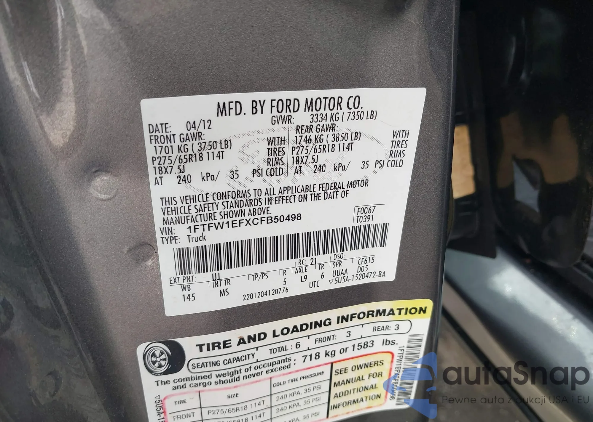 LOT: 42404006 VIN: 5TFRY5F17JX232651