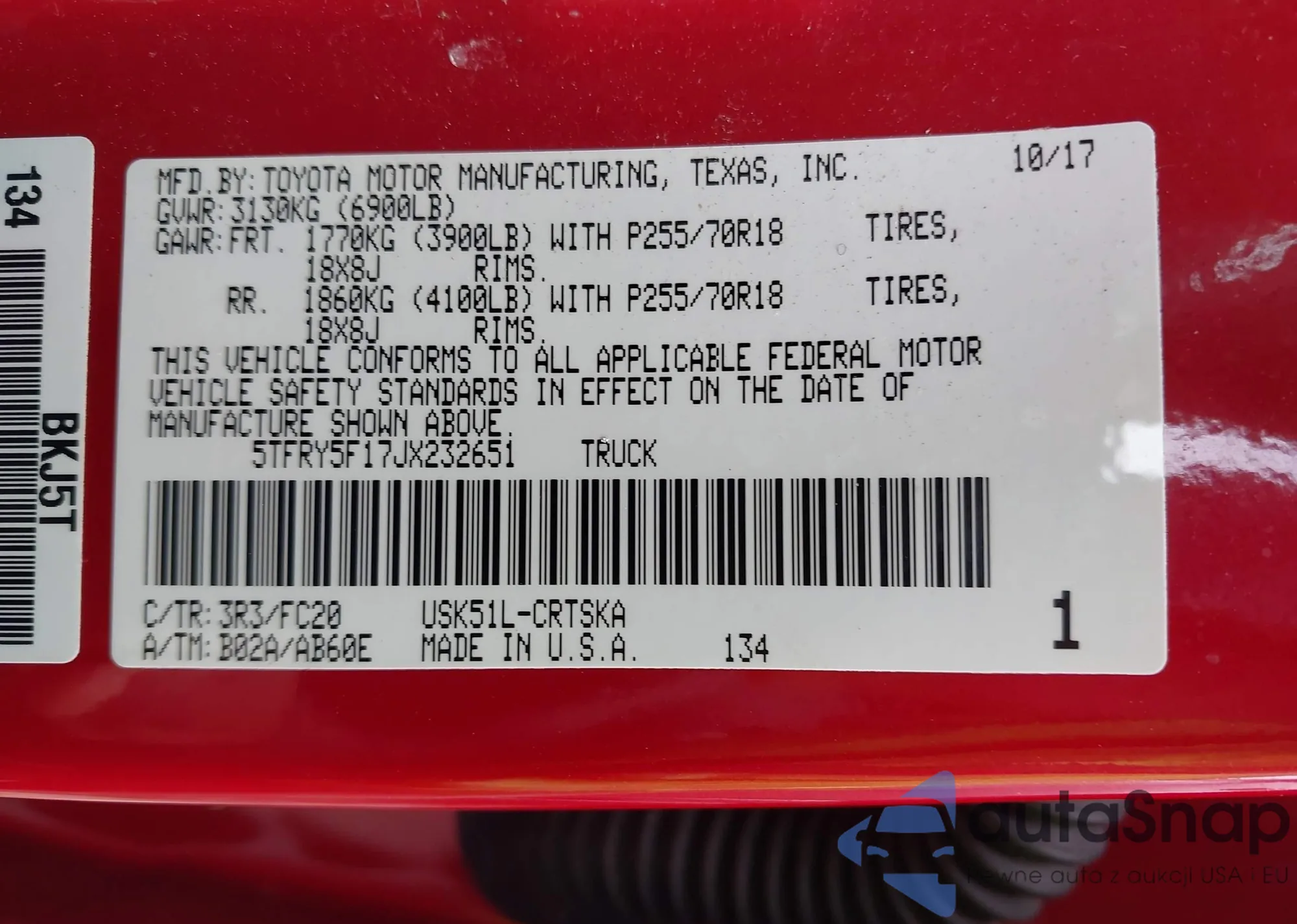 • VIN 5TFRY5F17JX232651
