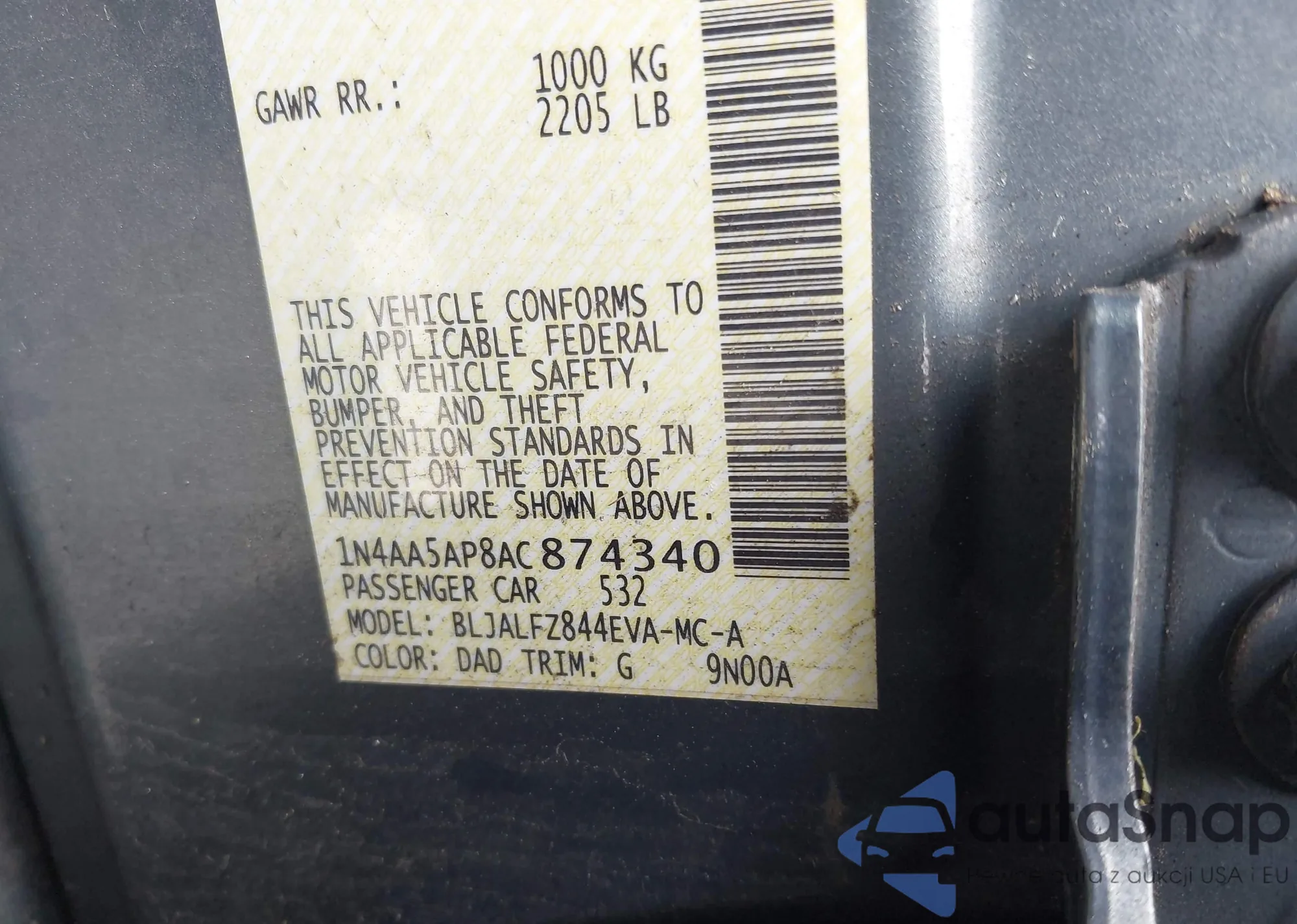• VIN 1N4AA5AP8AC874340