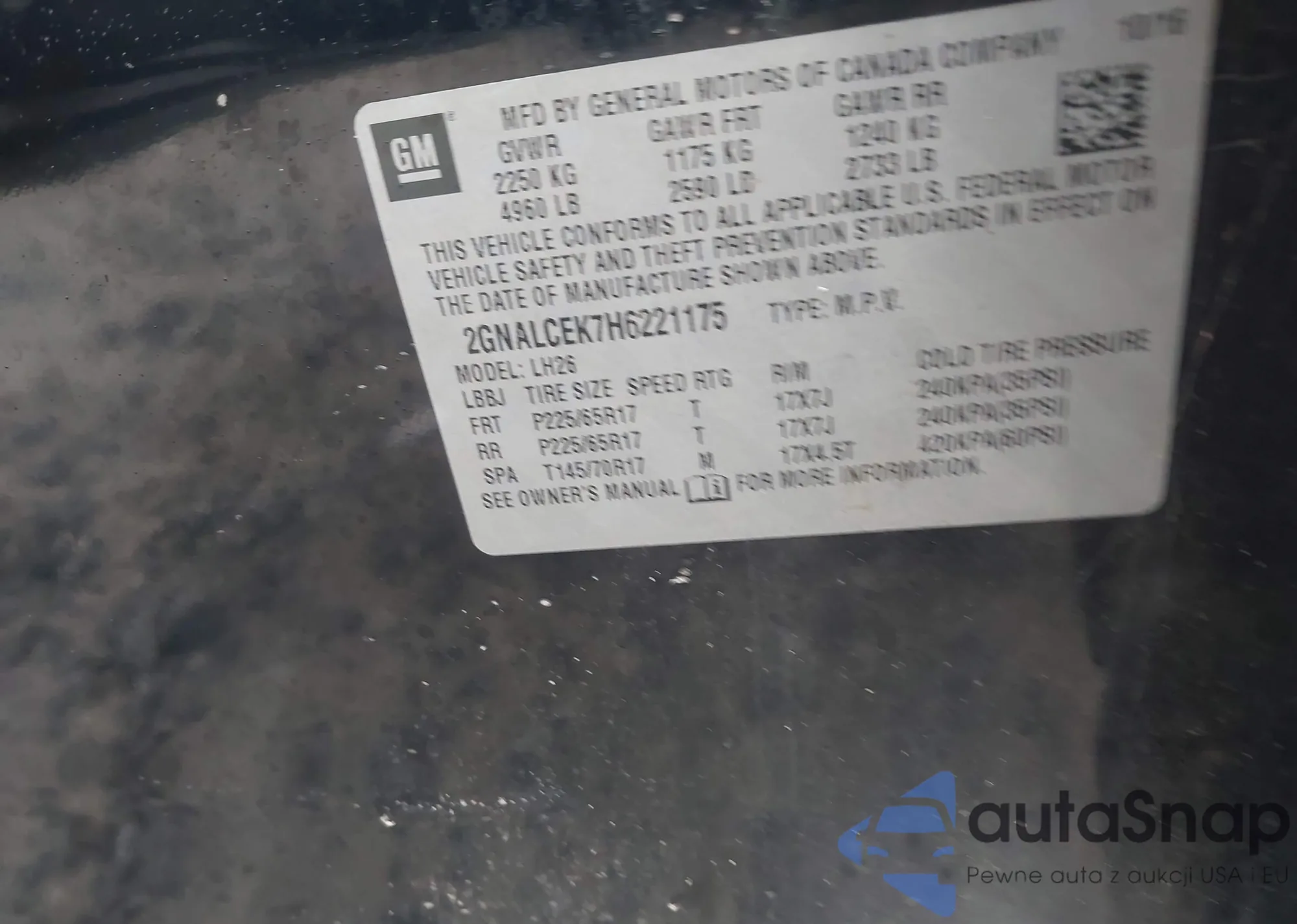 • VIN 2GNALCEK7H6221175