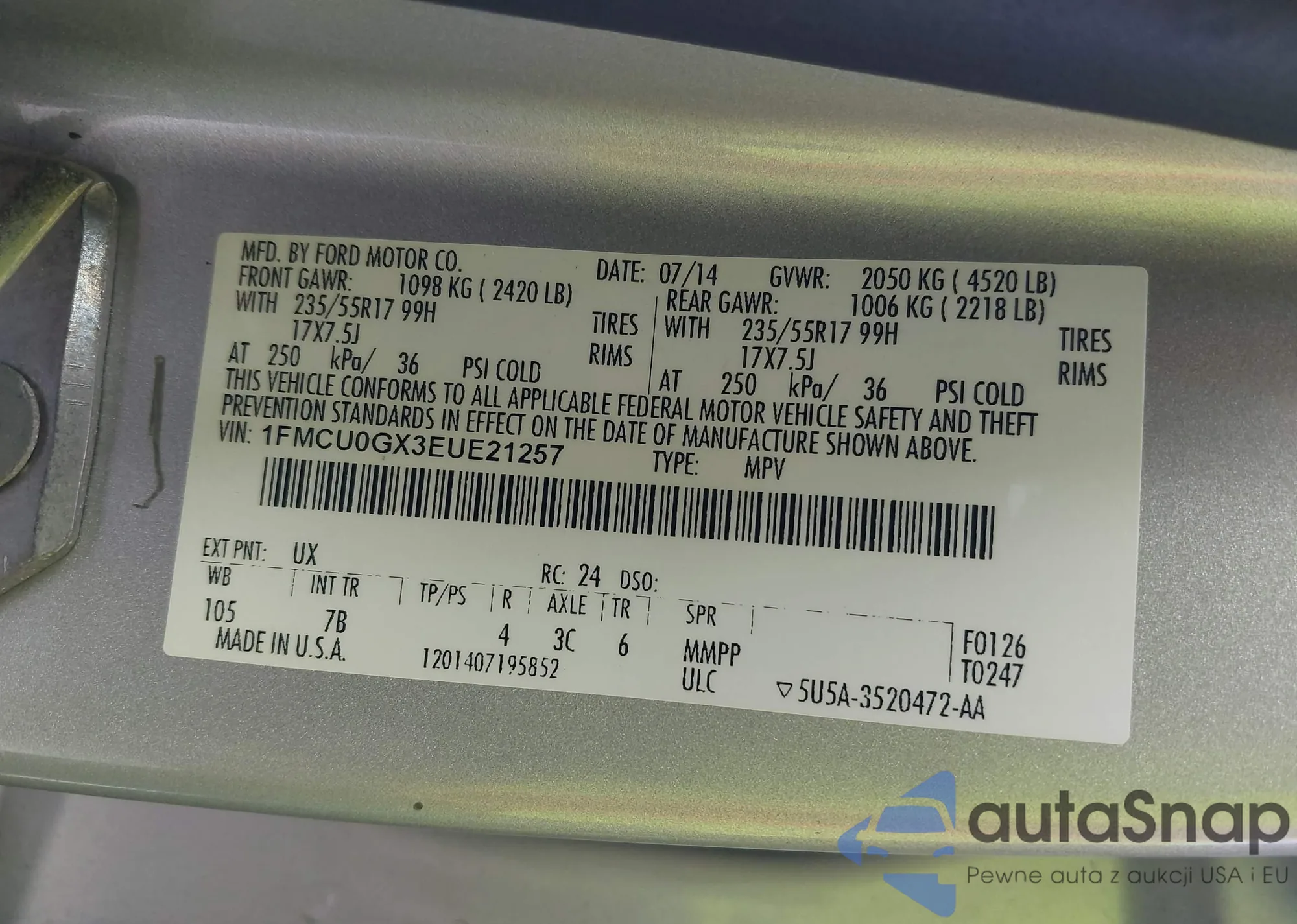 LOT: 42579220 VIN: 1FMCU0GX3EUE21257