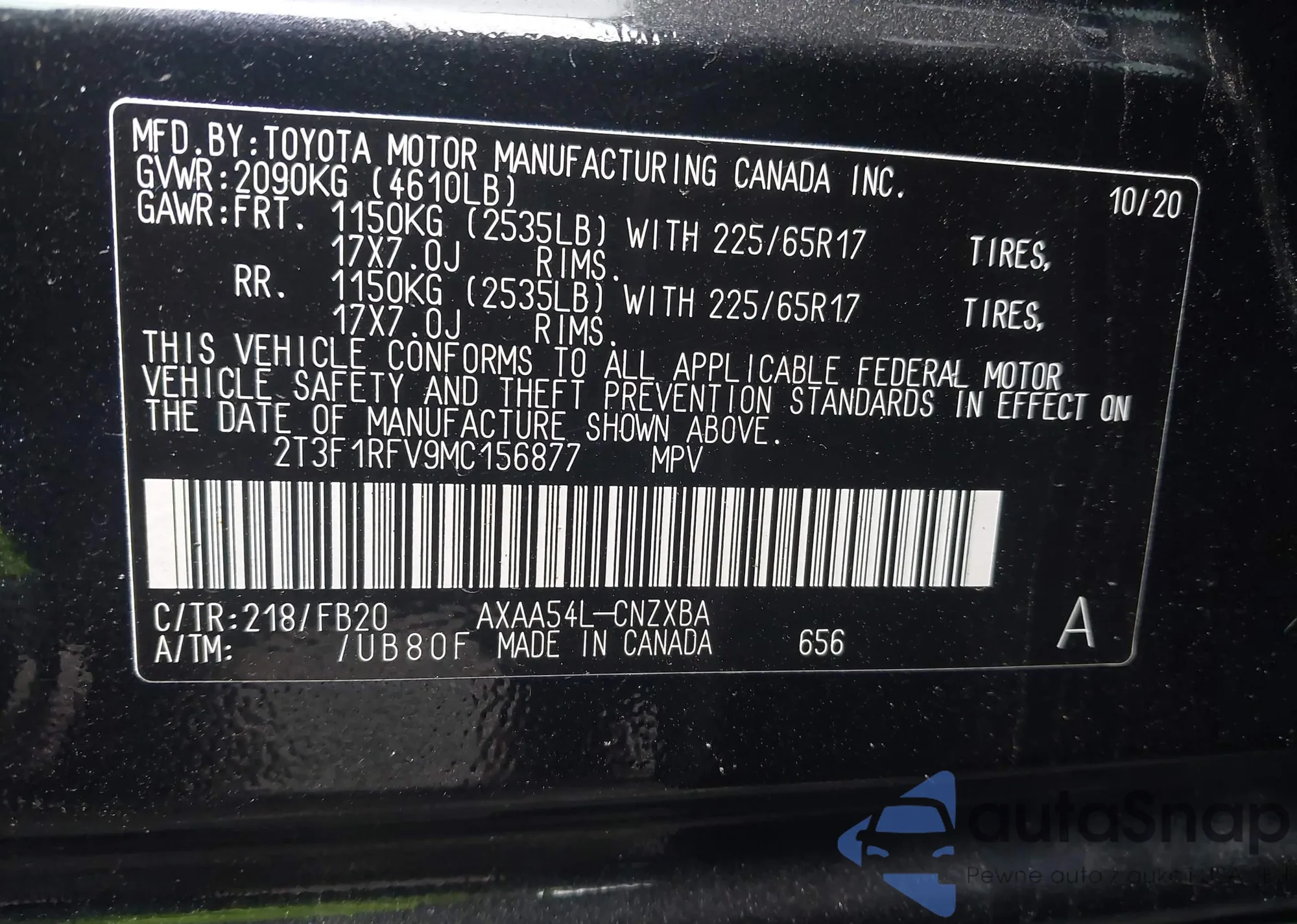 • VIN 2T3F1RFV9MC156877