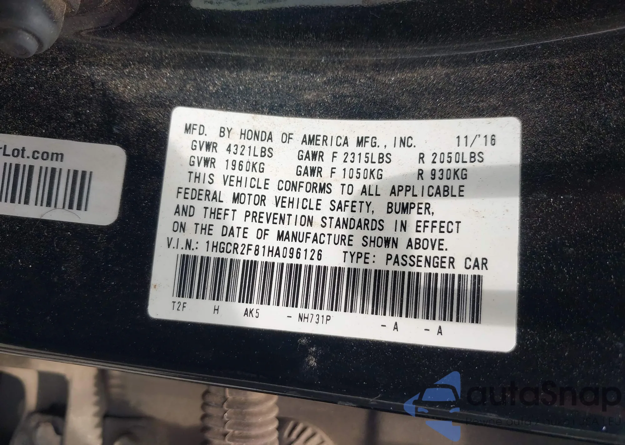 LOT: 42546590 VIN: JTDKN3DU3A0109854
