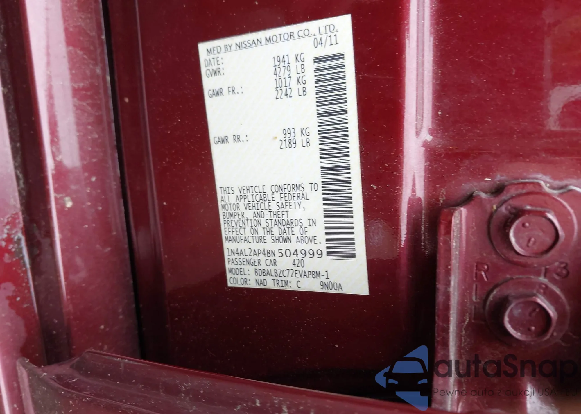 LOT: 42469077 VIN: 1N4AL2AP4BN504999