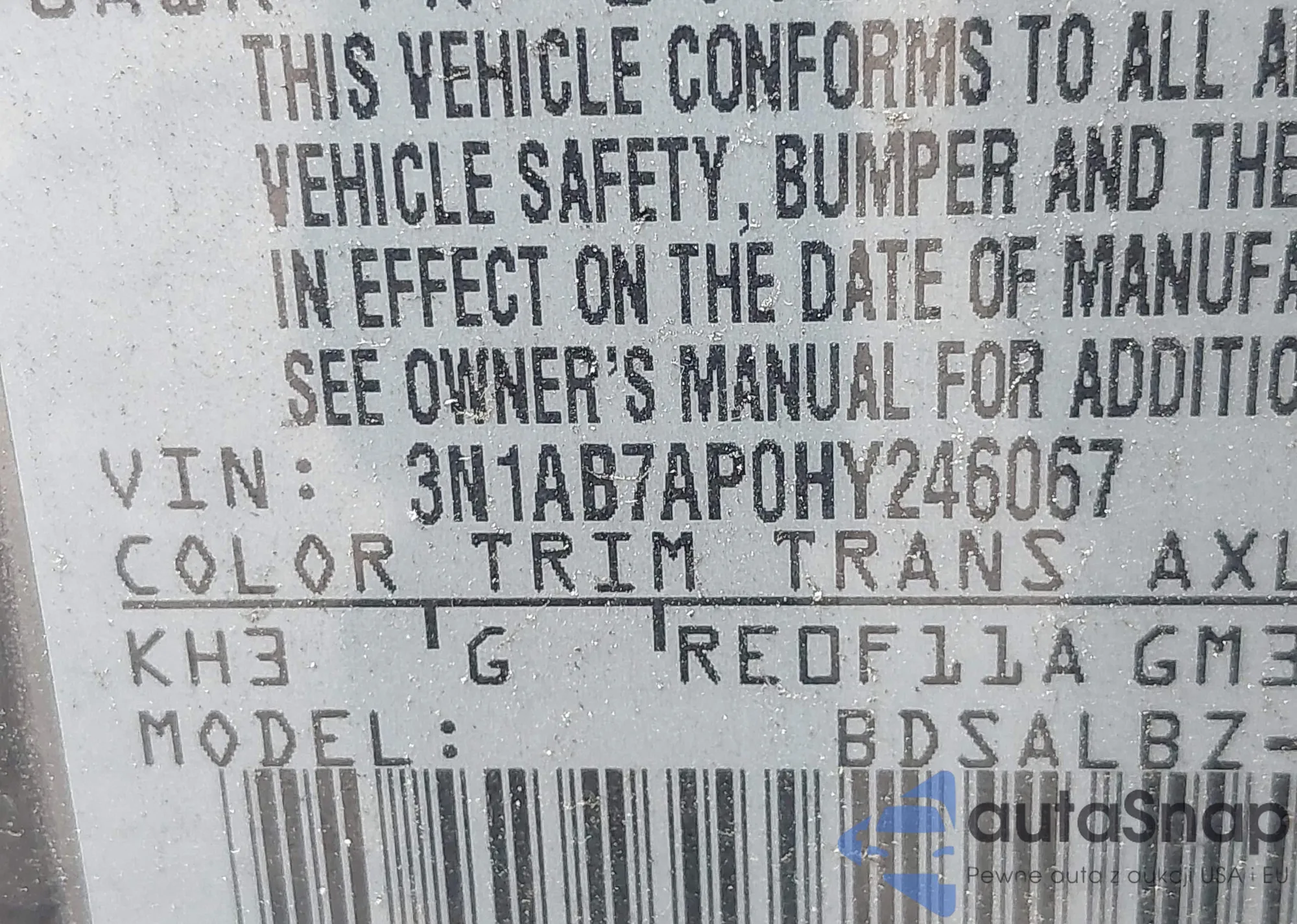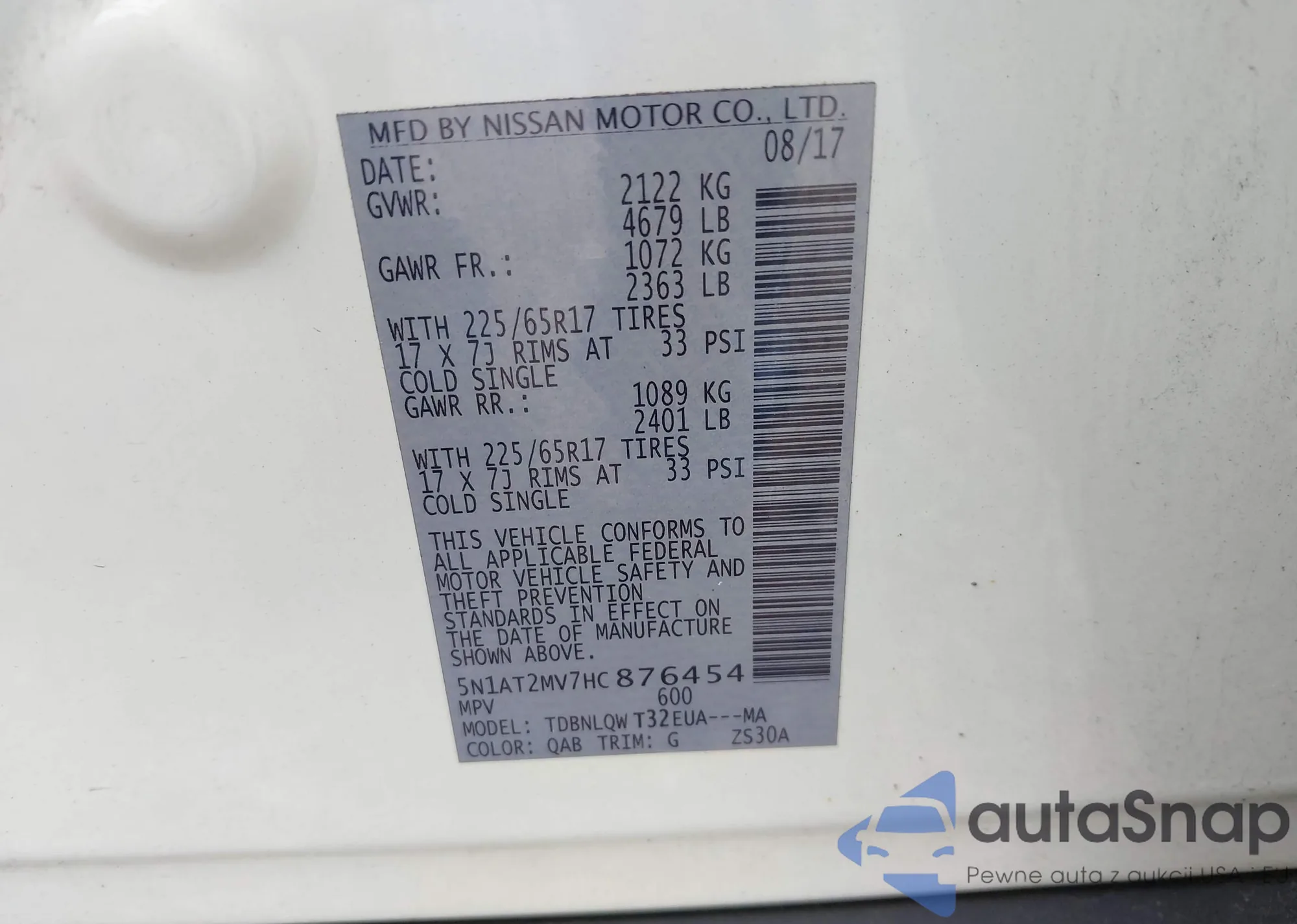 LOT: 42517244 VIN: 5N1AT2MV7HC876454