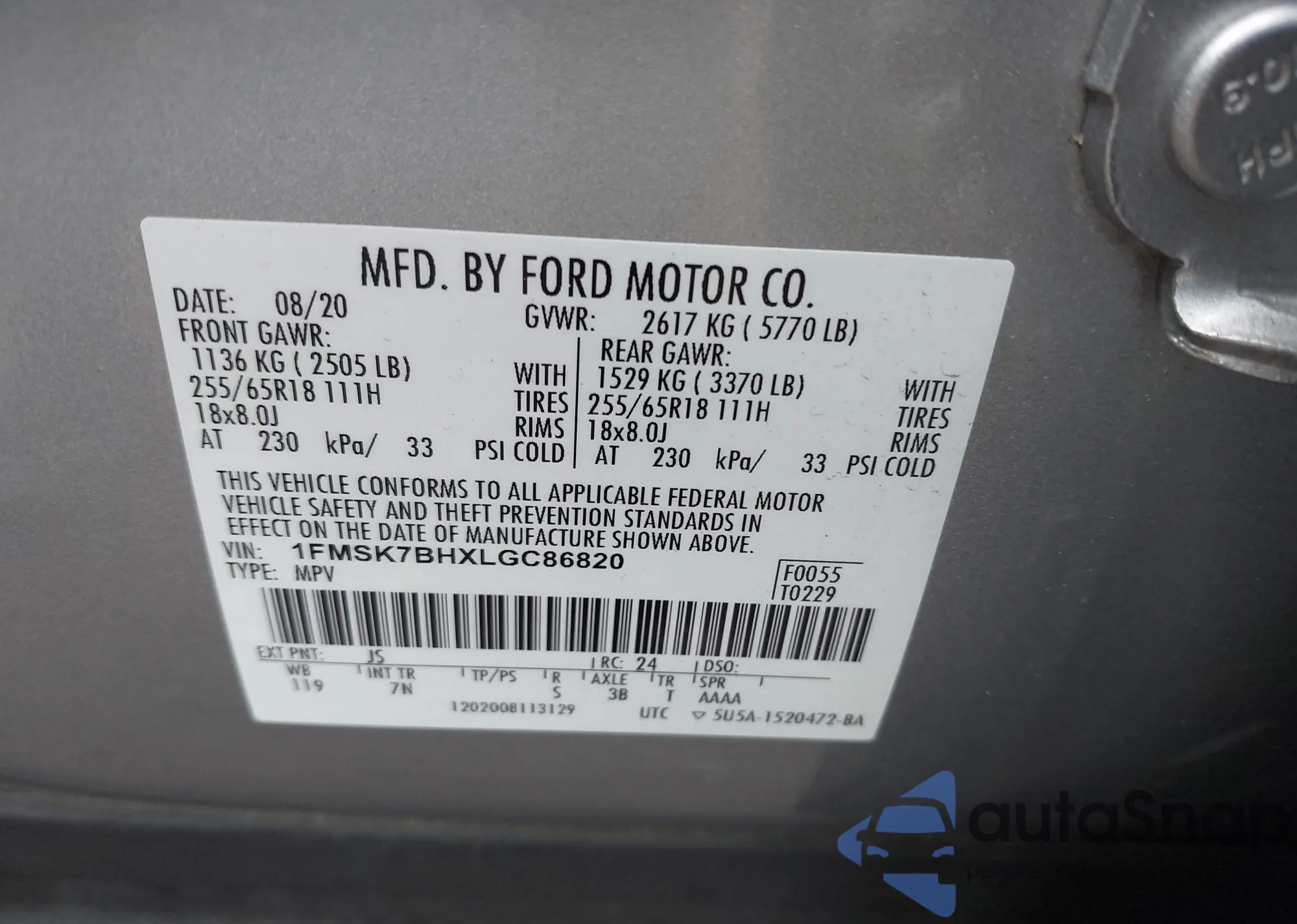 LOT: 42272259 VIN: ZFBNFACH9LZ042570