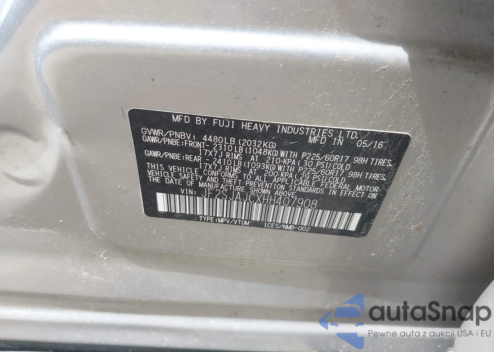 • VIN JF1GJAN62FH016862