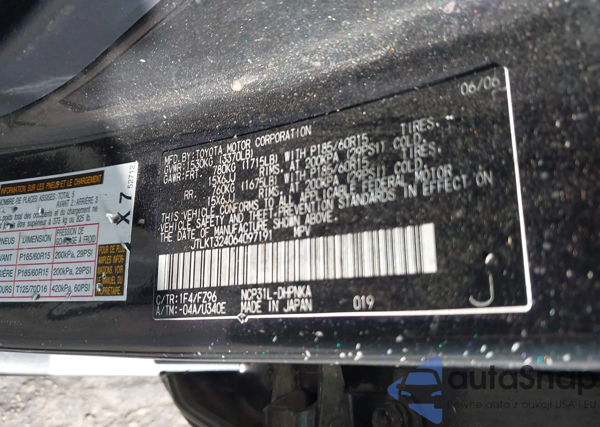 LOT: 42434167 VIN: JTLKT324064097191