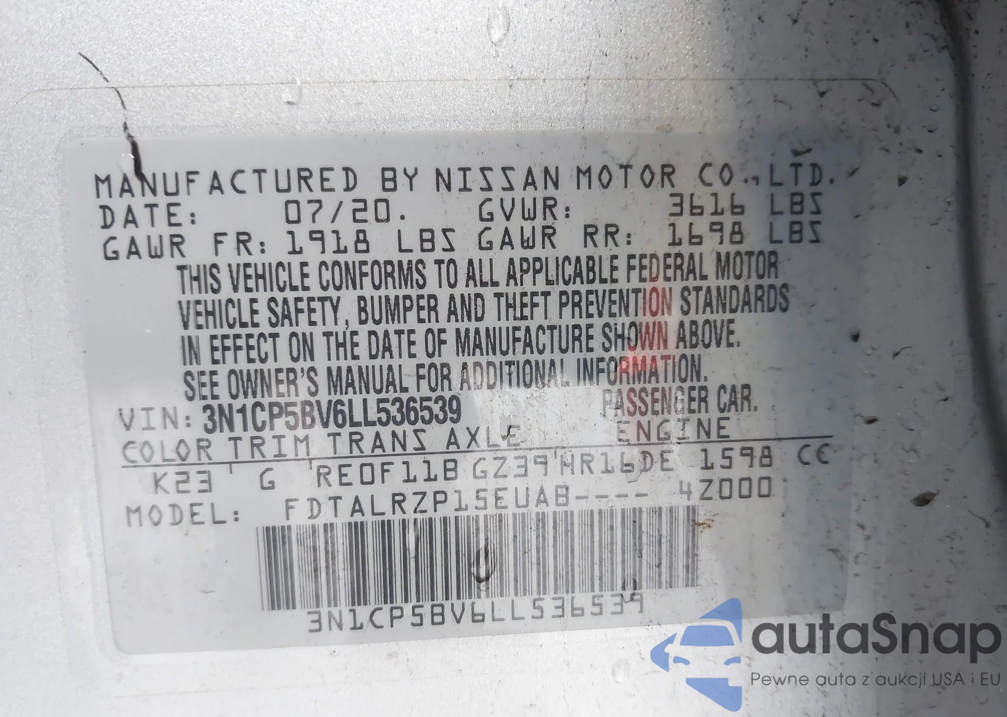 • VIN 3N1CP5BV6LL536539