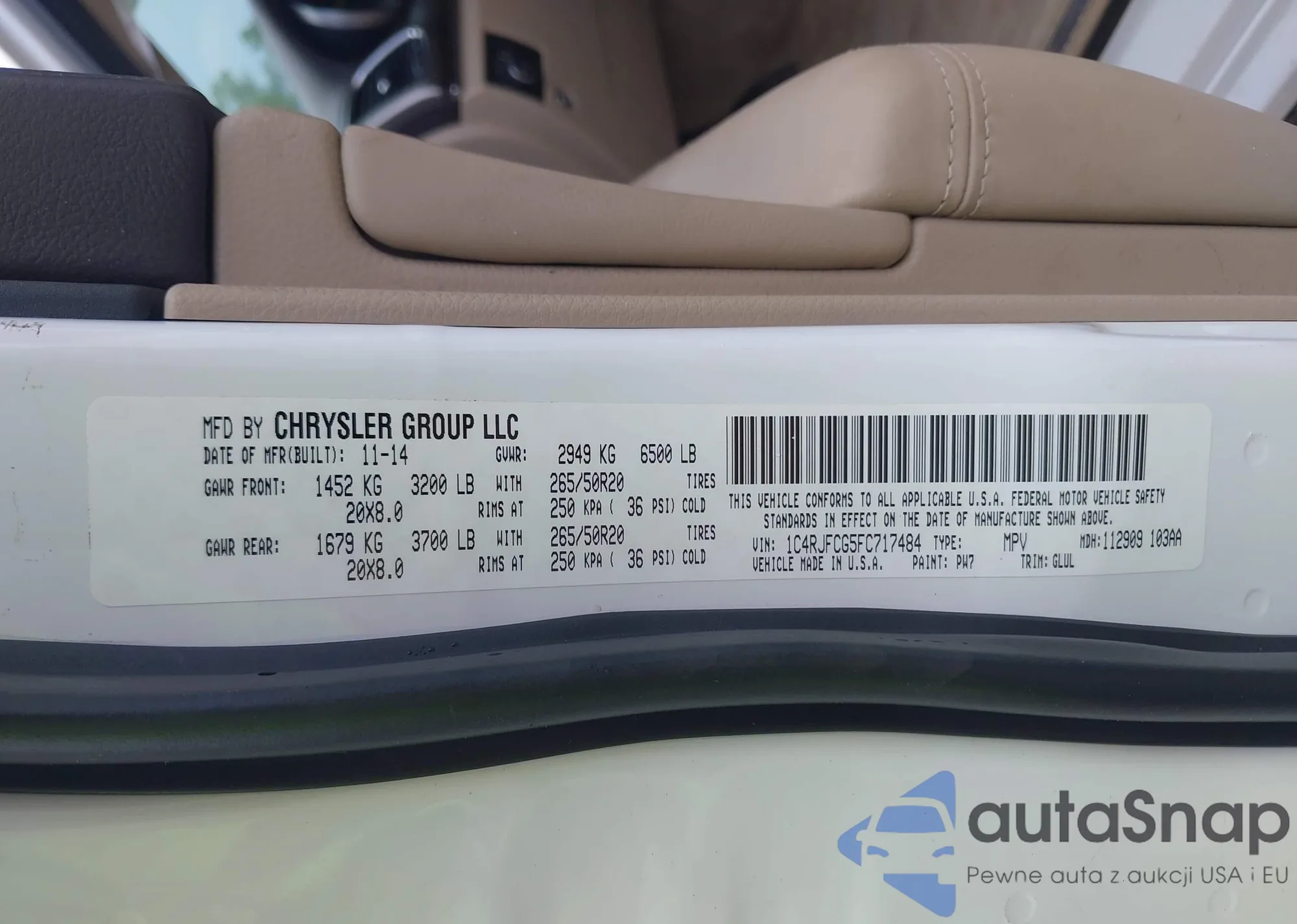 • VIN 1C4RJFCG5FC717484