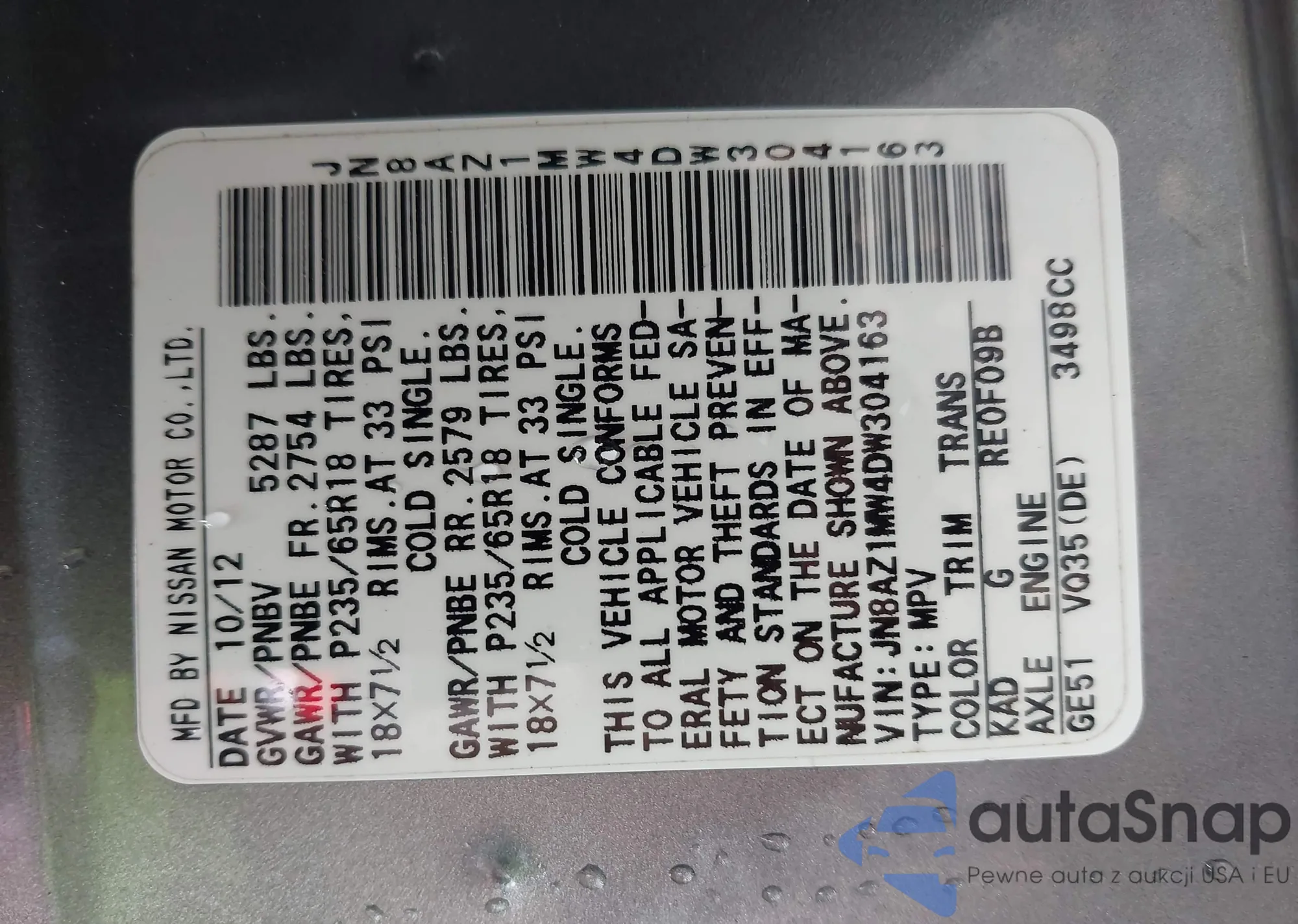 • VIN 5N1AT2MV5KC712143