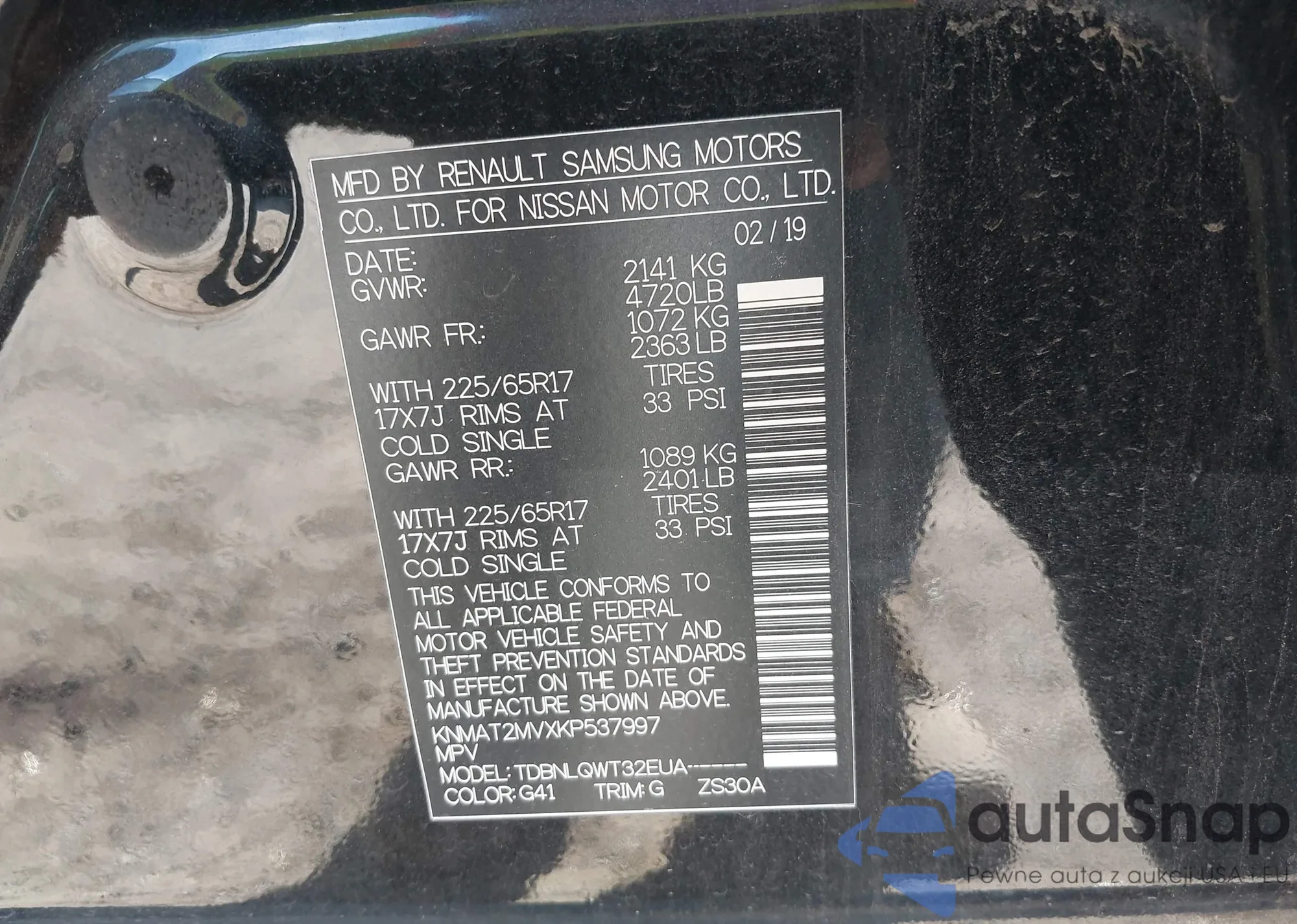 • VIN KNMAT2MVXKP537997