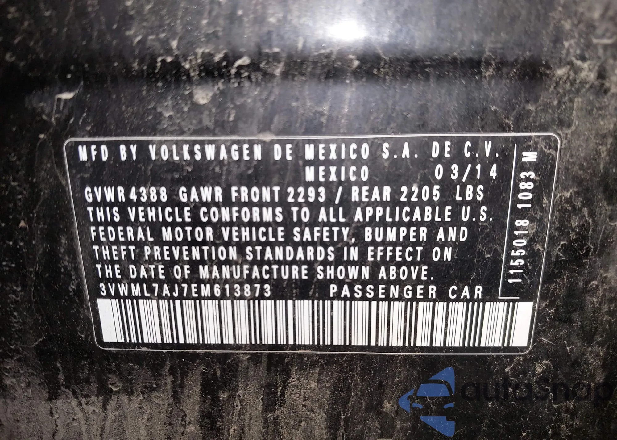 • VIN 3VWML7AJ7EM613873